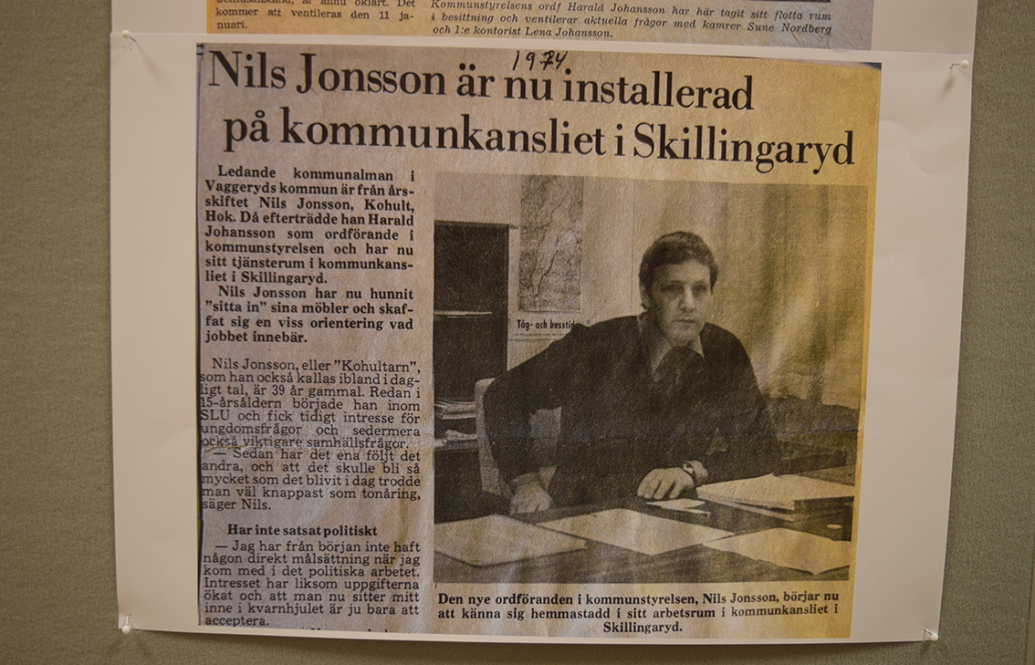 Gert Jonsson; – Min far var den första valda kommunalrådet mellan 1973 och 1976, då var jag tonåring. Jag hade ett spännande liv i Kohult men det var ännu mer spännande att vara med far på jobbet. Skillingehus var nytt, det är stort i dag och det var stort som en 13-åring. Man stötte på de här kloka männen. Sedan var det så att det var inte så himla kul att sitta i ett sammanträdesrummen och rita. Beställa mat på resaturangen var bra och sedan fanns det en spelautomat och då hade man haft en dag här i huset. Minnet var att det var väldigt modernt och något helt annat än vad man upplevt tidigare.