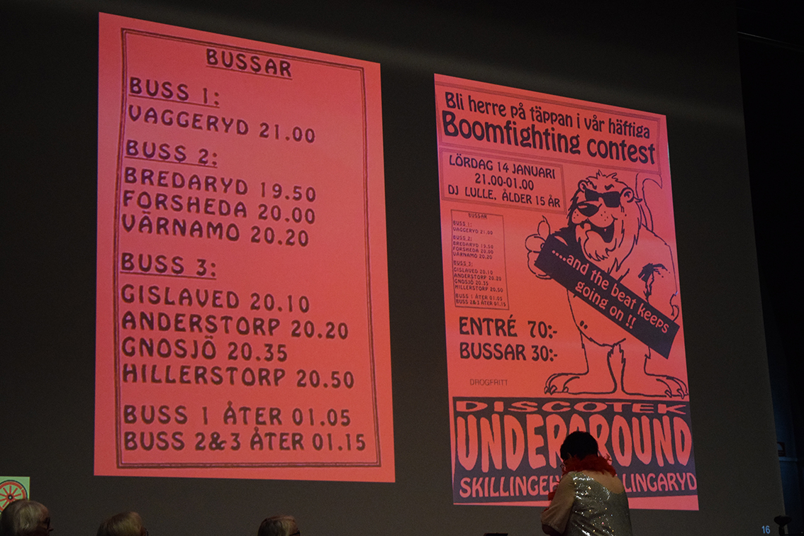 – 2018 började jag jobba som kommunikatör här i Vaggeryds kommun. Det känns lite vemodigt att samlas här i kväll, det finns så mycket att upptäcka forfarande. Det murades in en kopparkista med bland annat tidningar, bilder från första spadtaget och mynt. Med hjälp av Karl-Erik Karlsson har kopparkistan hittats. 5 mars 1971 var det invigning. 12 mars 1971 var det dags för premiären av fredagsdansen där 500 deltog. Flera föreningar var arrangörer. Det var hela 30 000 besök under 1971 och 50 000 besökare 1972. I januari 1980 anordnades den sista fredagsdansen.