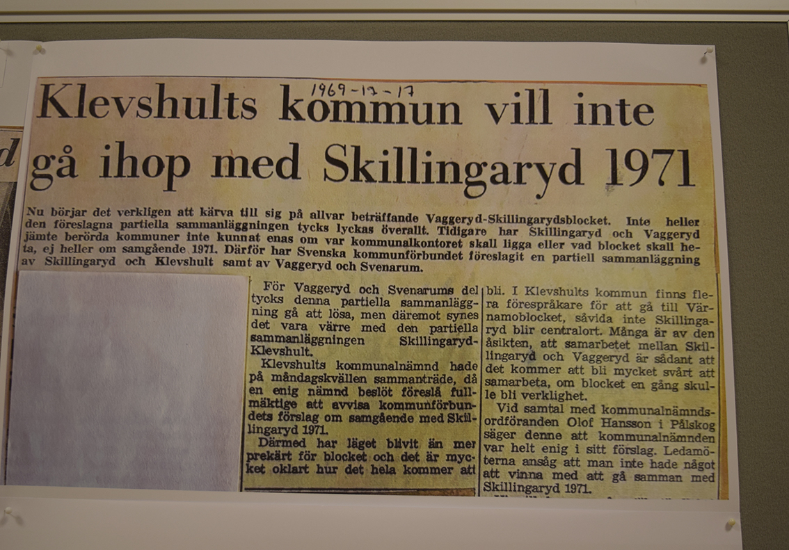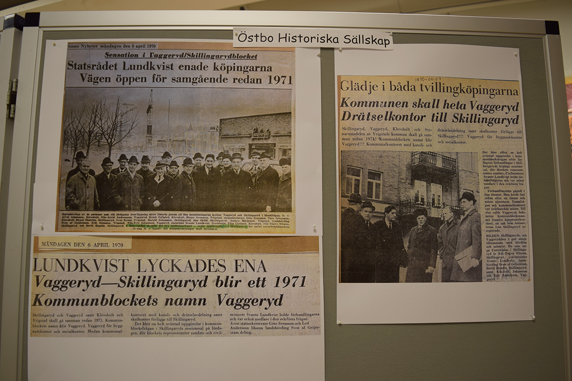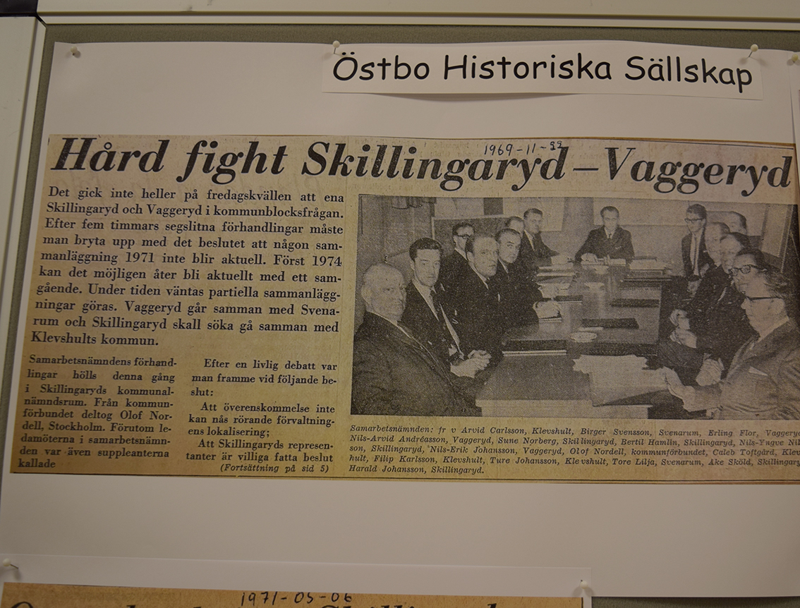 1. Väldigt många fina foton och texter. Men ni missade målning som hängde på väggen bakom utställningen. Den visade porträtt på många av dåtidens gubbar. Målningen hängde på dåvarande LO-fackens expedition. Finns nu arkiverad i Folkets Hus Vaggeryd. Robert Alkemark vet mera om tavlornas öden.