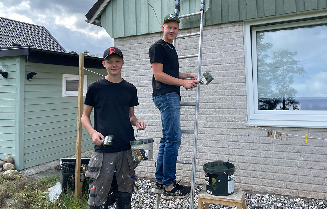 I en tomt i norra Skillingaryd är två av företagarna i Trio fix i färd med att måla husfasad, en av sysslorna som de har ägnat sig åt i sommar. Ett annat populärt uppdrag har varit ogräsrensning. Trio fix erbjuder trädgårdstjänster och fastighetsservice. Grundarna i företaget Vigor Karlsson, Olle Sundbäck och Wille Lundqvist är tre av ett femtiotal ungdomar som har skapat sina egna sommarjobb den här sommaren, med bidrag från Vaggeryds kommun. Killarna i Trio fix har fortfarande lite uppdrag kvar, trots att projektet har haft sin avslutning. Deras slogan är: ”Allt för ett vackrare hem” och de har haft mycket att göra, men inte för mycket, den här sommaren.