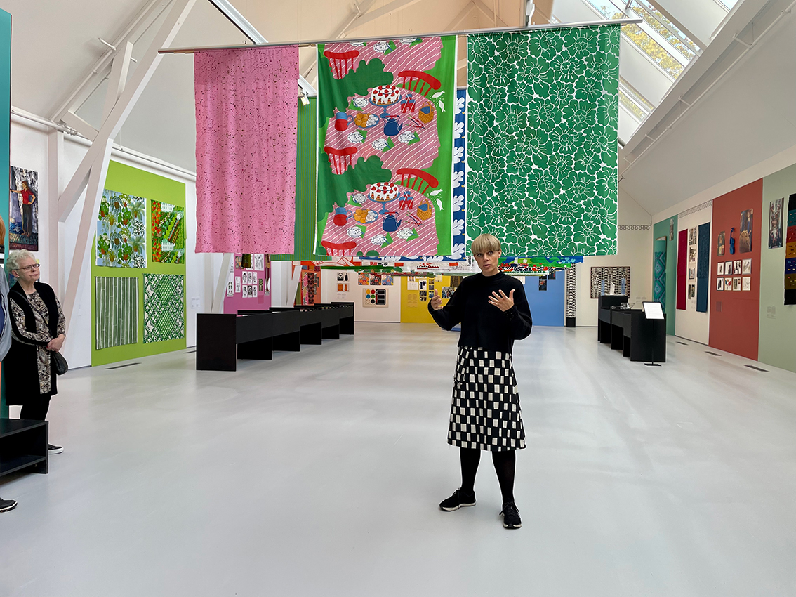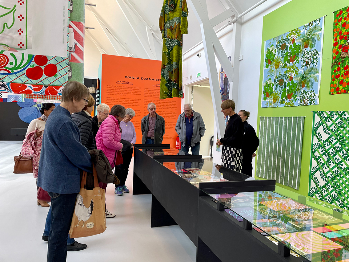 – Färger är ju något som alla kan relatera till och de allra flesta har ju sin favoritfärg. Tanken med de här visningarna är att man kan plocka upp minnen eller att man hittar saker som man känner igen och det besökarna är intresserade av. När jag har en grupp går visningen lite långsammare, vi sitter oftast stilla en stund och tittar och sedan pratar vi om det vi ser efter en liten stund. Tanken är också att fokusera på lite färre grejer så att det inte blir oroligt. Vi försöker hitta platser i utställningen där man tror att man kan väcka minnen och det som besökarna vill titta på eller prata om, berättar Ida Olsson.