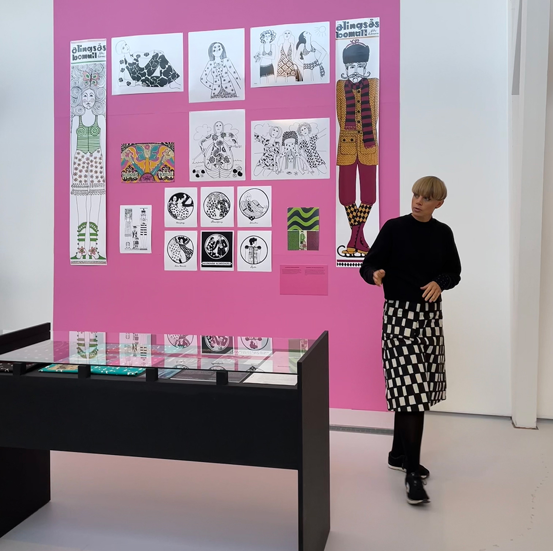 På Vandalorum har de olika utställningar och den här dagen är det bland andra textilkonstnären och formgivaren Wanja Djanaieff som visar sin utställning om hennes 22 älsklingsfärger. Wanja har framförallt formgivit textilier och har varit verksam i 60 år. Utställningen är väldigt färgglad och har fantastiska mönster.