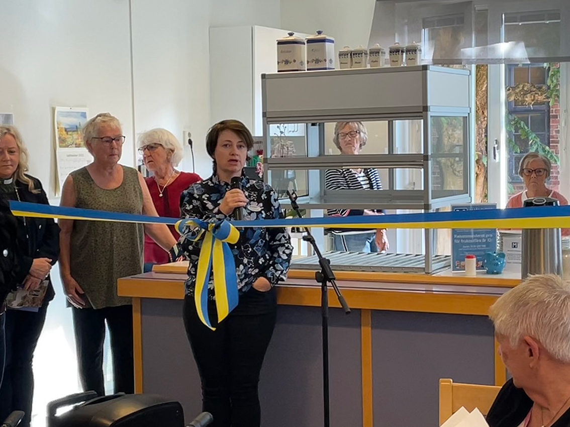 – Jag har varit med från början i planeringsstadiet. Det här är en unik verksamhet när kommun, kyrkor och civilsamhälle samarbetar och gör något bra tillsammans. Fantastiskt och extra roligt i dessa fina ljusa lokalerna, säger Jenny Andersson som är chef för arbetsmarknadsenheten i Vaggeryds kommun.