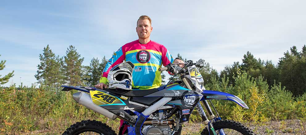 – Vi är ett team med nio stycken kompisar som tycker om att köra motocross och enduro. Det finns en lång historia bakom. Jag förlorade min mamma i cancer 2018 och året därpå startade vi teamet. Då frågade jag mina närmaste vänner om de ville vara med och det ville de jättegärna. Vi kör motocross och enduro och så säljer vi reklamplatser på motorcyklar och kläder för folk som vill stötta oss och vår insamling. Företag skänker pengar dels till vårt team och till vår insamling. Vi sammanställer insamlingen varje år och skänker den till cancerfonden i samband med cancergalan på TV4.