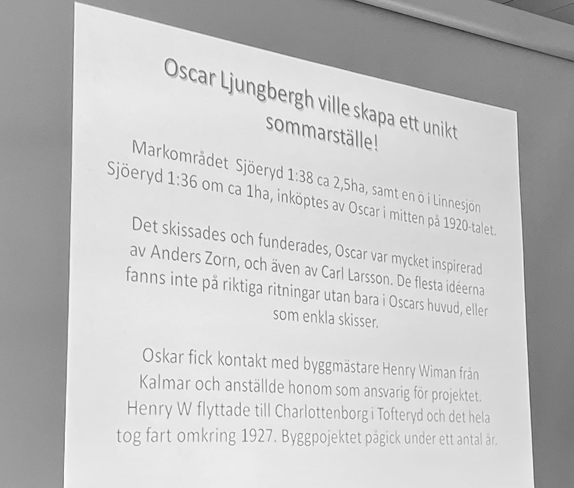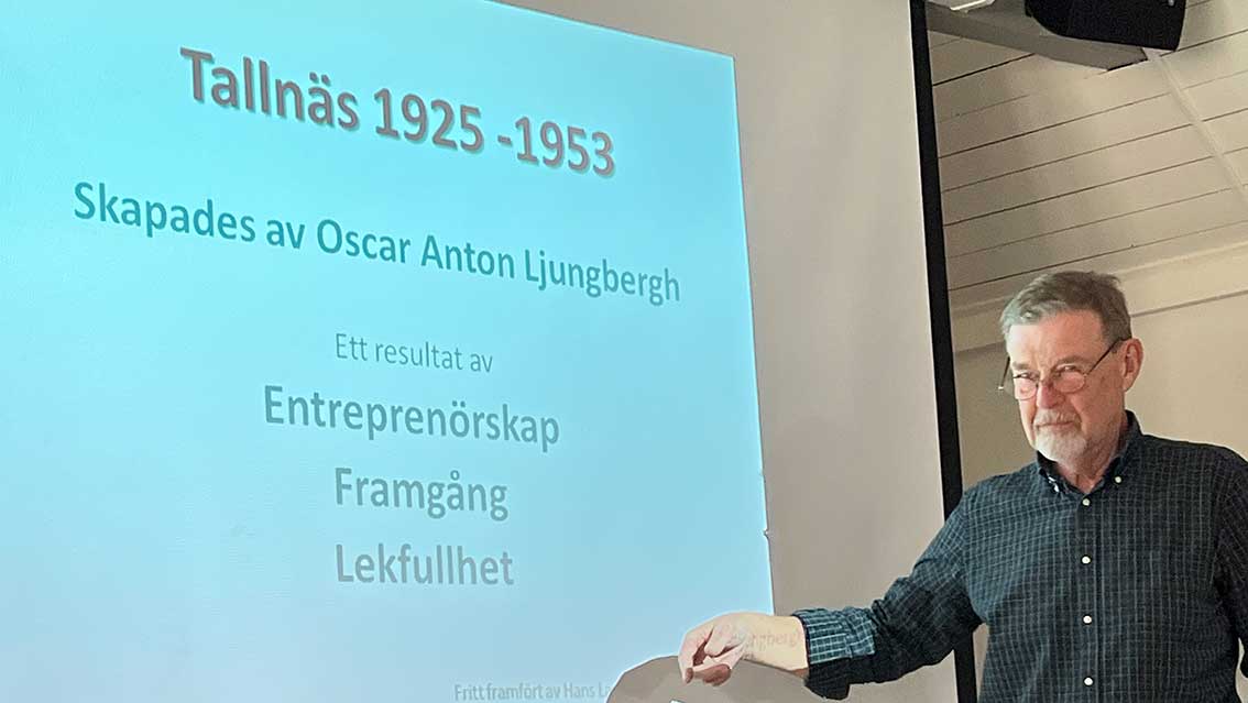 Hans Ljungbergh från Jönköping var inbjuden till årsmötet med Östbo Historiska Sällskap och han gav en levande beskrivning av hur Tallnäs kom till. Det var hans farfar Oscar Ljungbergh som var mannen bakom byggnationen.
