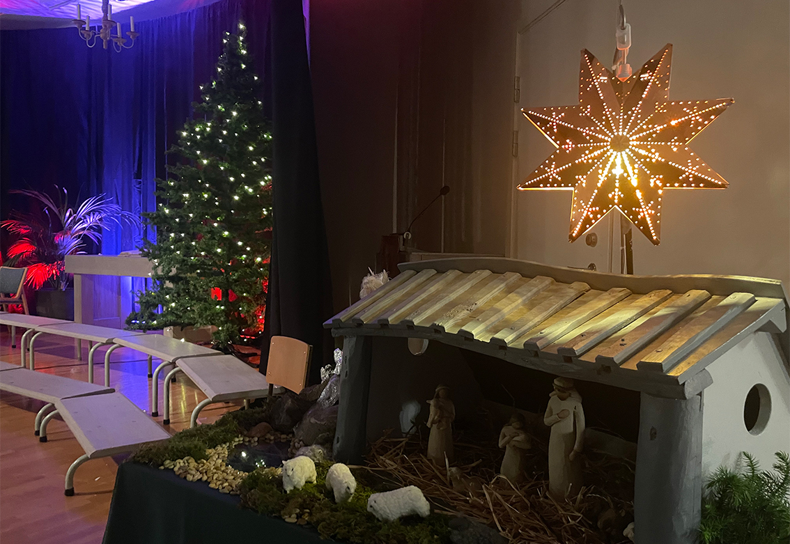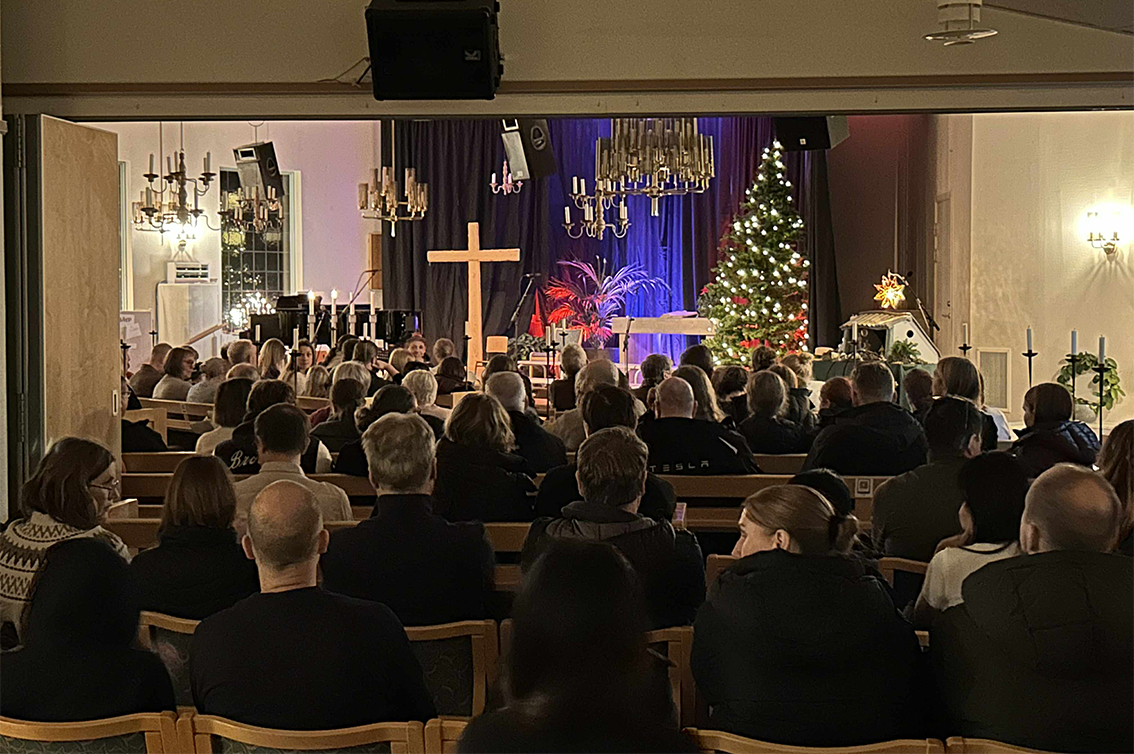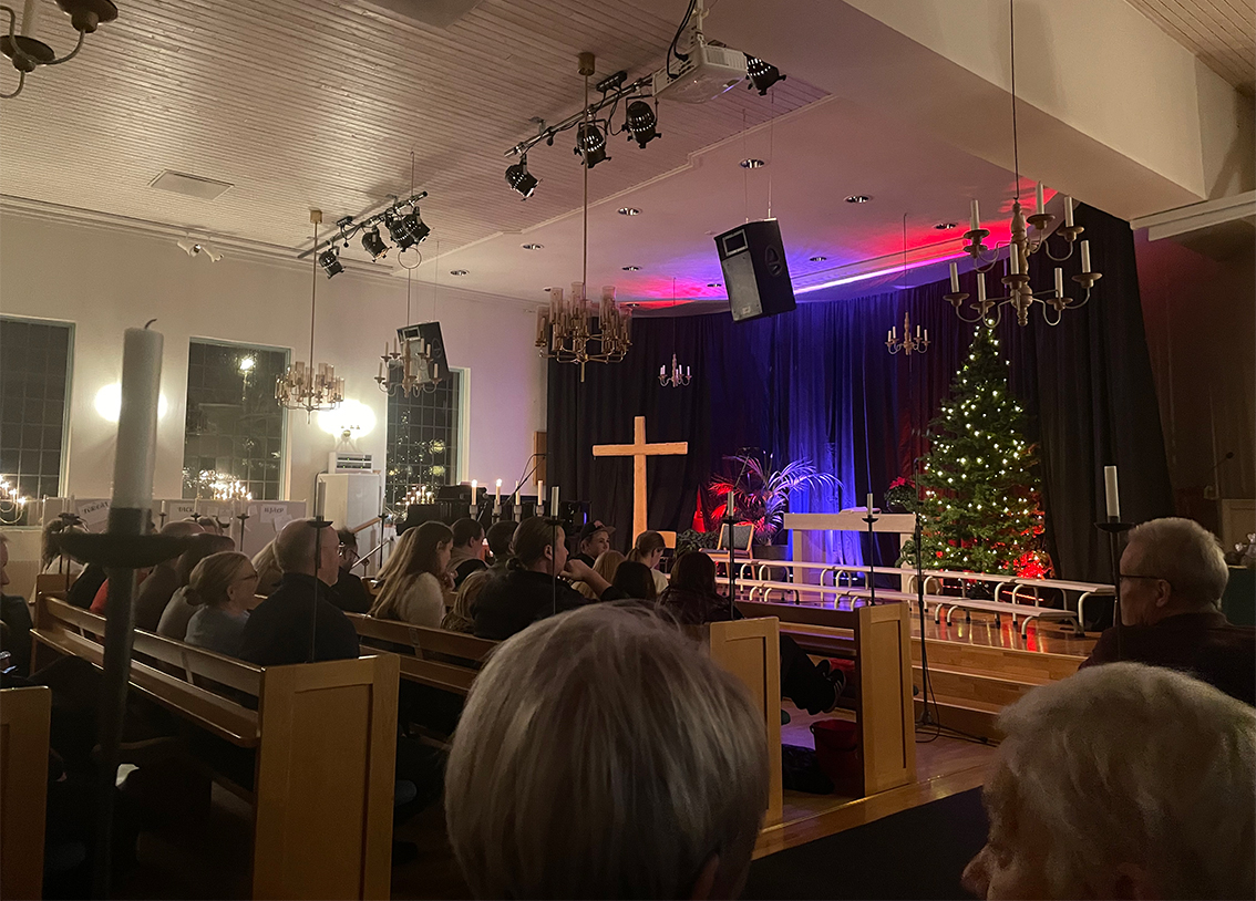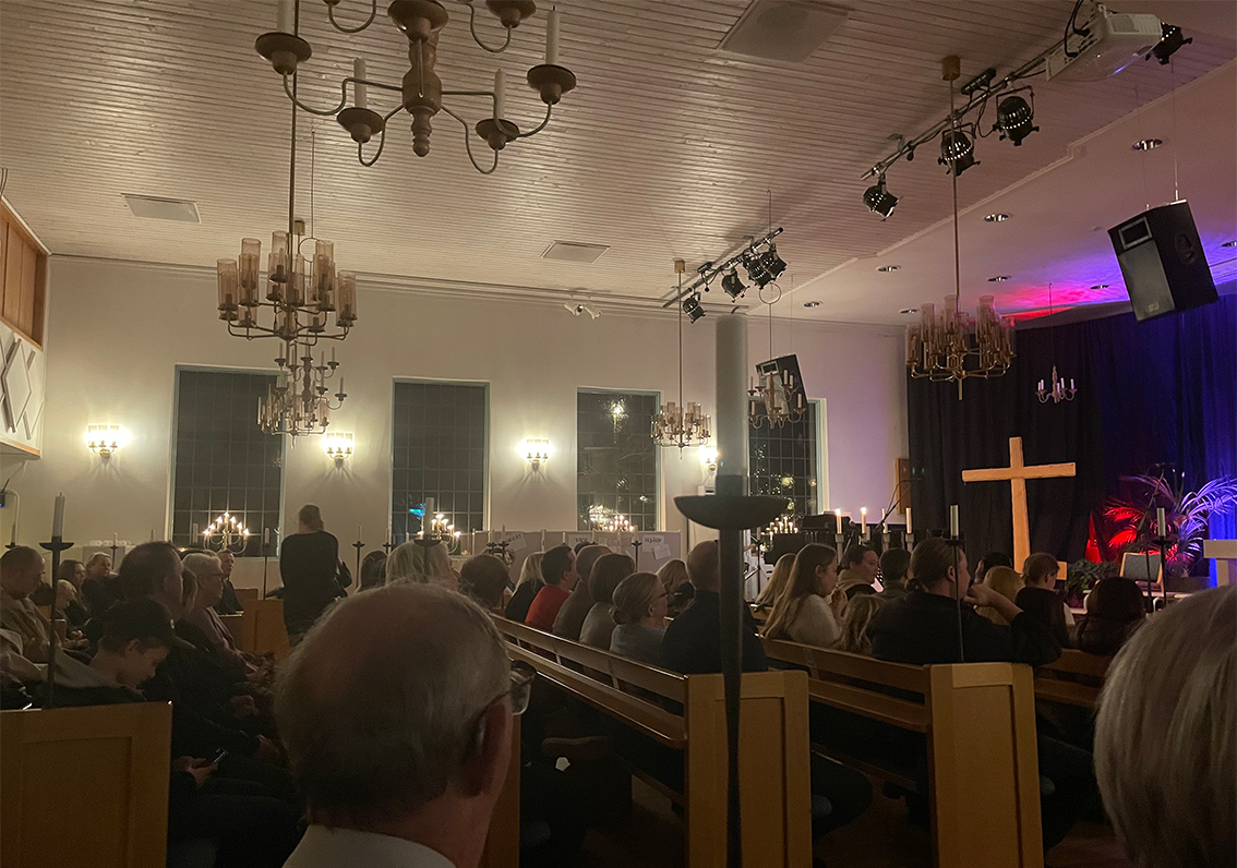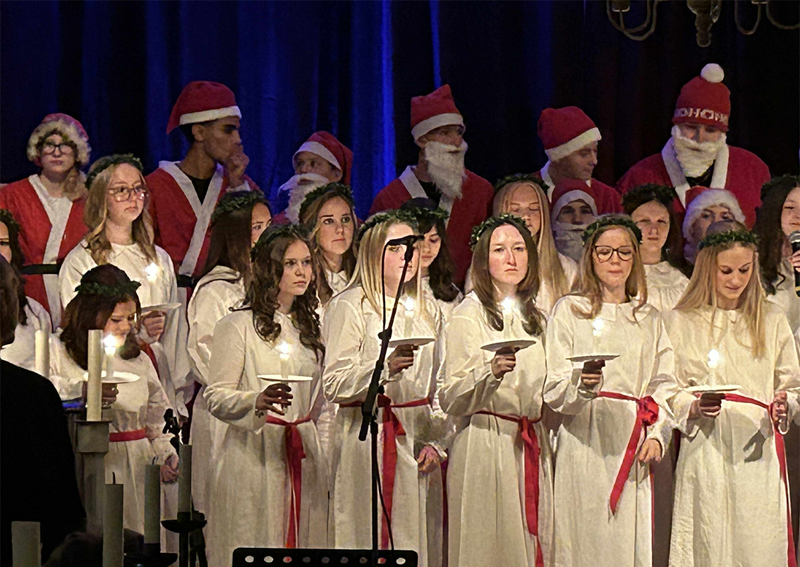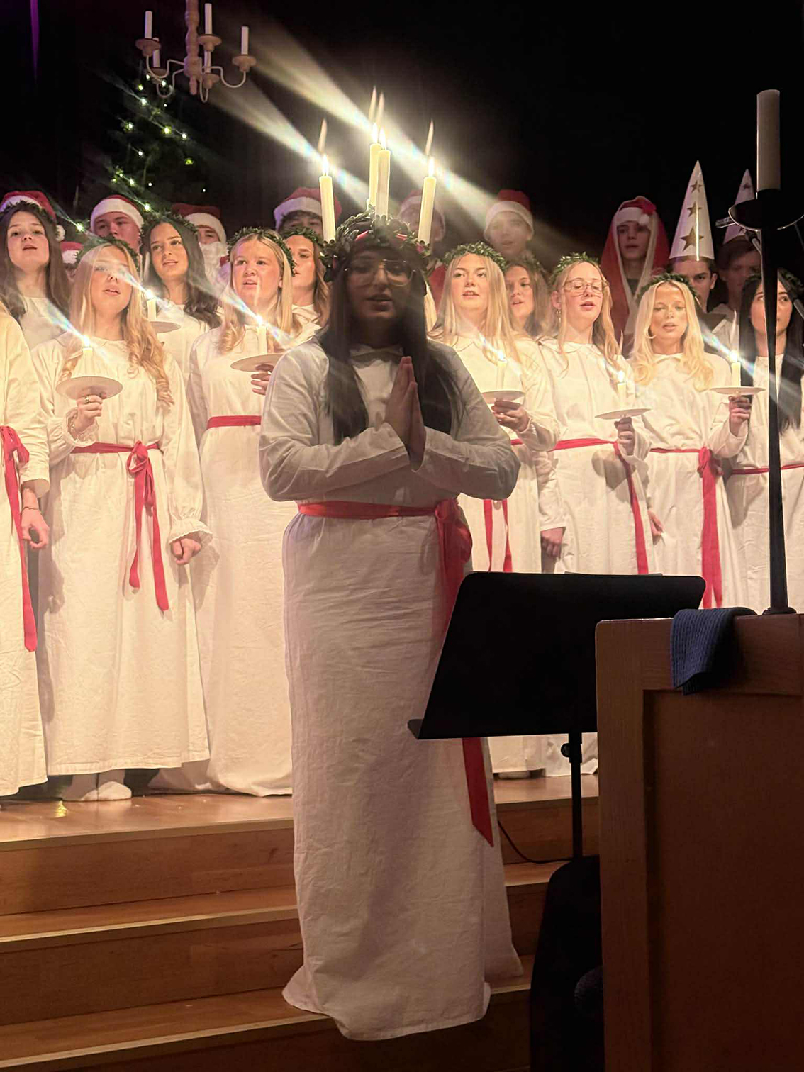 Den här morgonen fylldes Equmeniakyrkan av lussefirande niondeklassare från Hjortsjöskolan. Då bjuder de åttorna och sjuorna på luciatåg. I går kväll fick elvernas familjer en förhandsvisning.