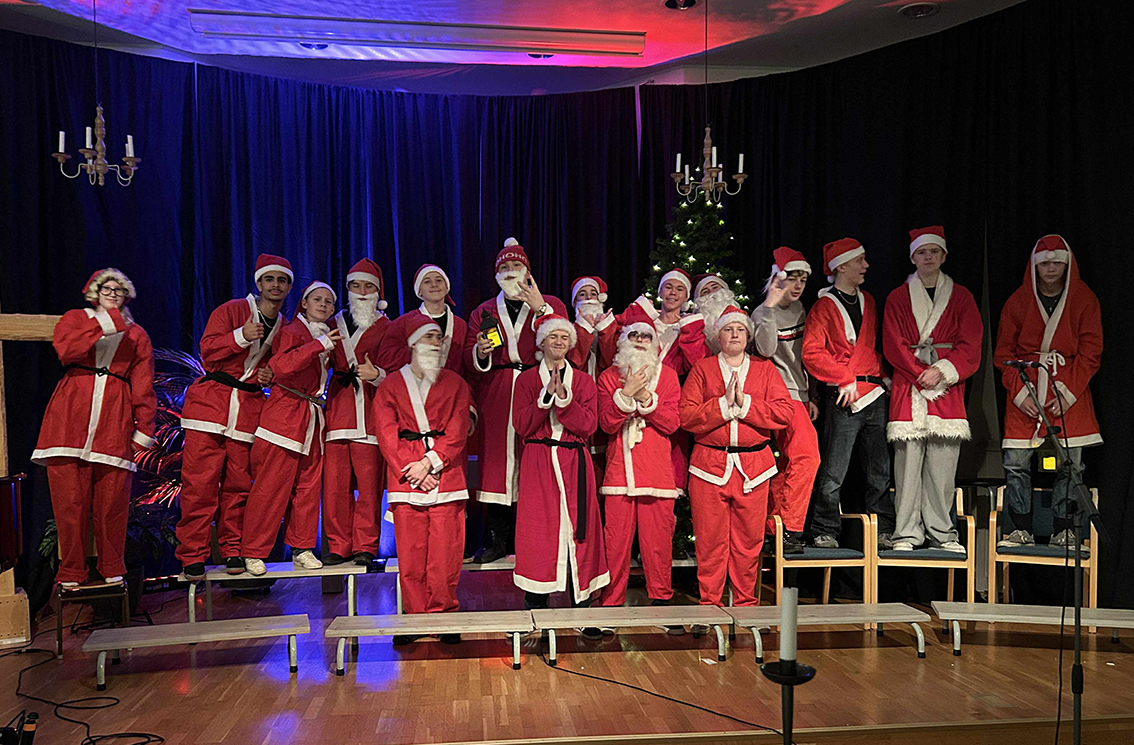 – Vi vill sprida gemenskap, ljus och värme. Eleverna har övat på musiken under mentorstid och annan tid. Det är kul att vi har många killar med i år. Ungefär hälften av våra nior är med i år, jättekul! säger Jeanette Holmberg Larsson.