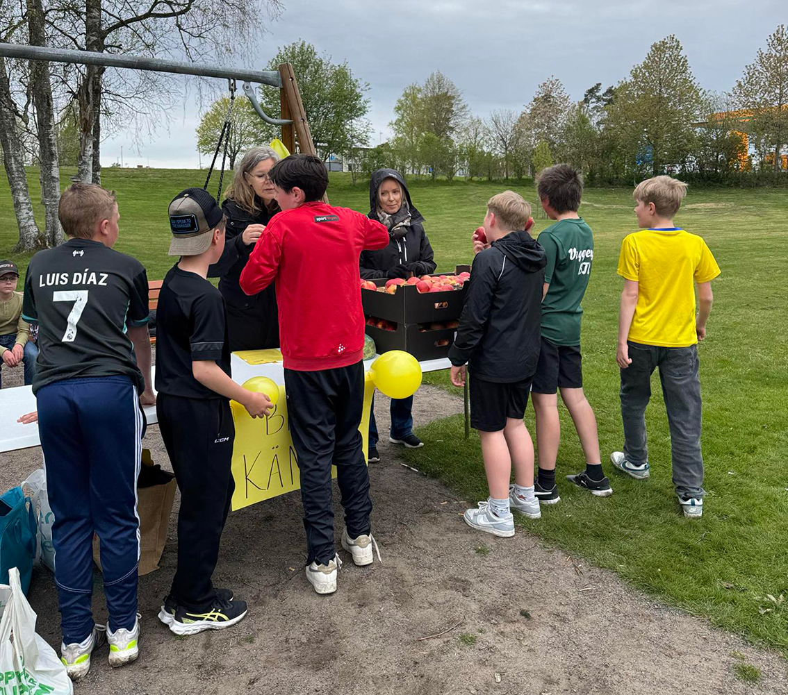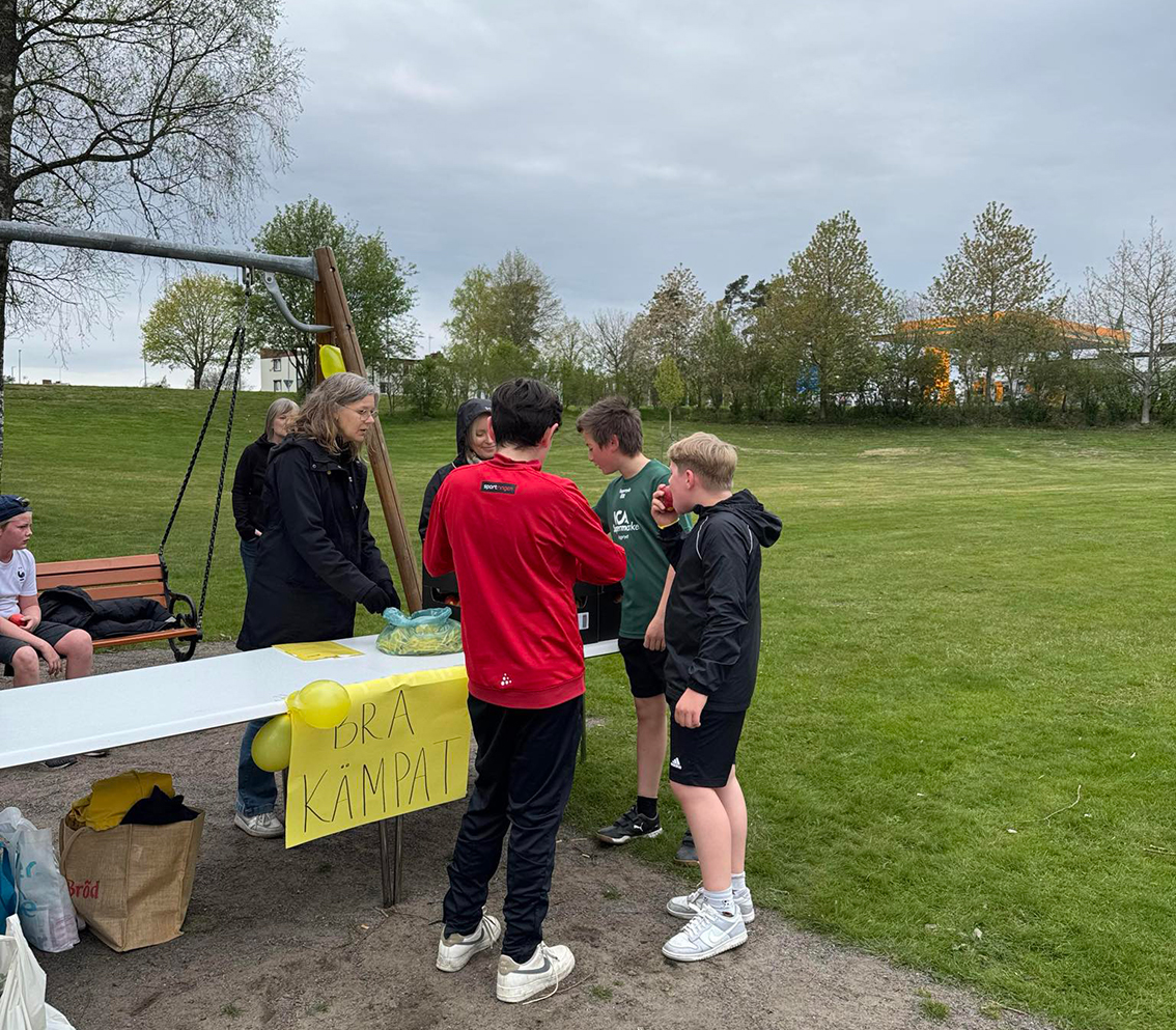När alla hade sprungit i tjugo minuter gick slutsignalen och eleverna fick välförtjänt hämta sig en frukt, som Ica Supermarket i Vaggeryd hade sponsrat med och alla fick också ett fint armband från Team Rynkeby.