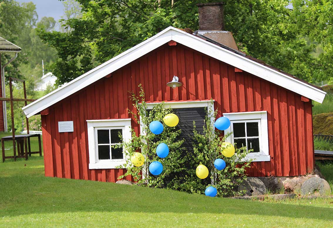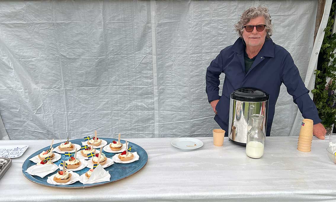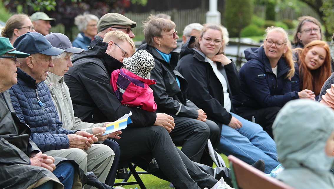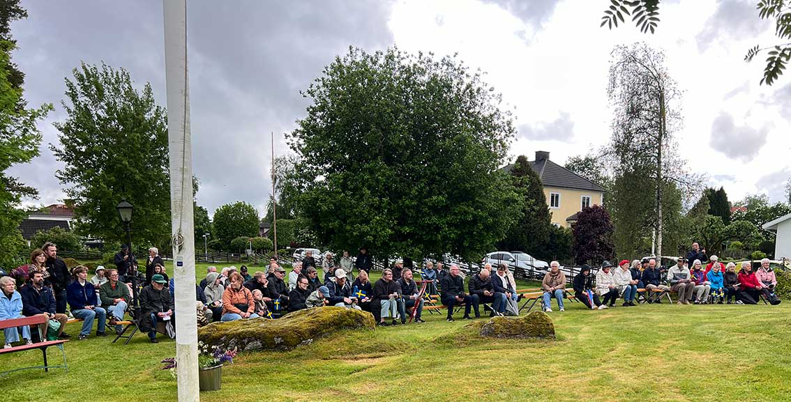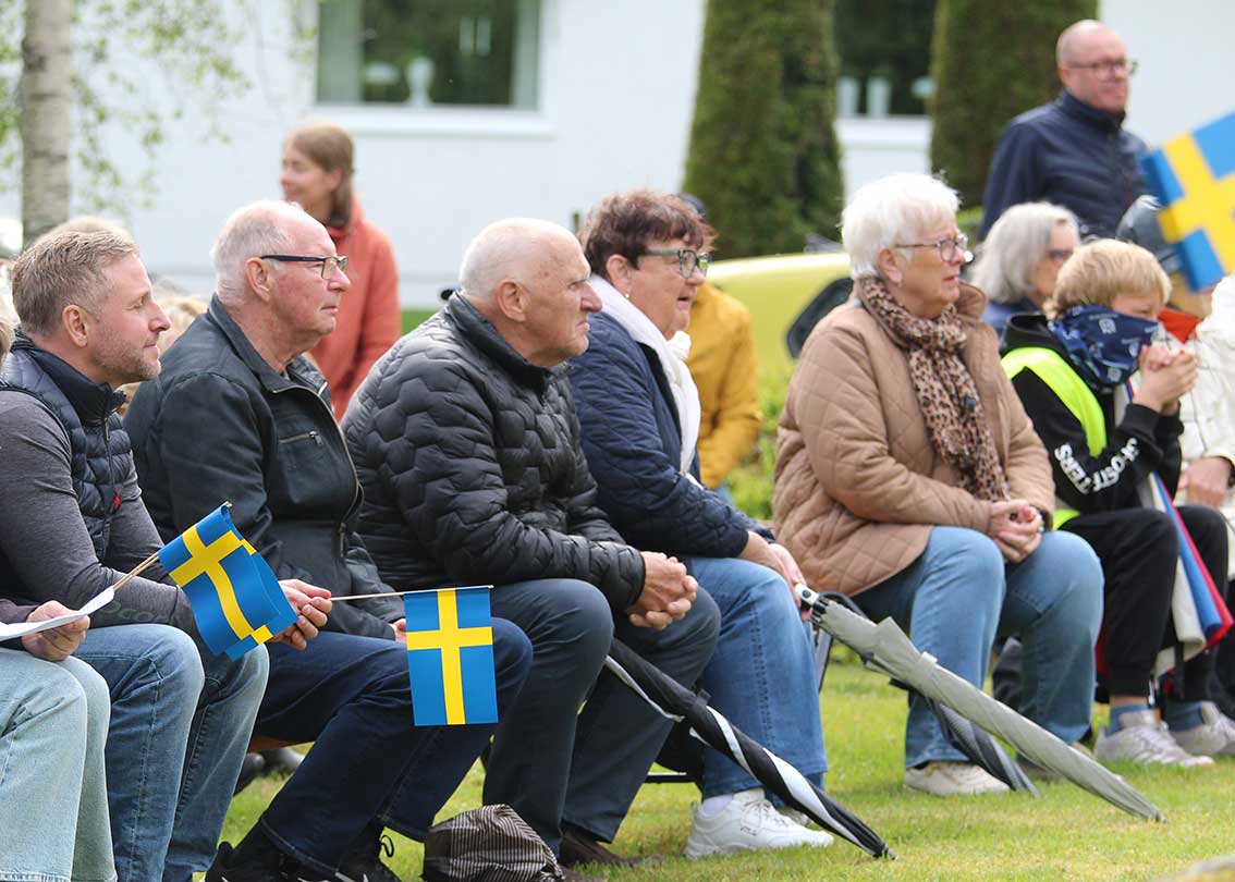 Totalt var det cirka 140 personer som samlades i den vackra hembygdsparken som inte bara var grön av gräsmattor, röd av stugor utan också blå och gul med flaggor och ballonger. Tofteryd-Hagshults hembygdsförening hade verkligen smyckat hembygdsparken fint.