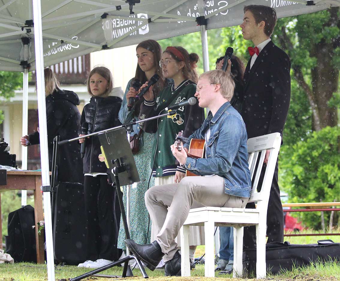 Lagom till firande av Nationaldagen i Skillingaryds Hembygdspark försvann i stort sett regnmolnen och det kom bara lite, lite regn – och faktiskt en del sol.