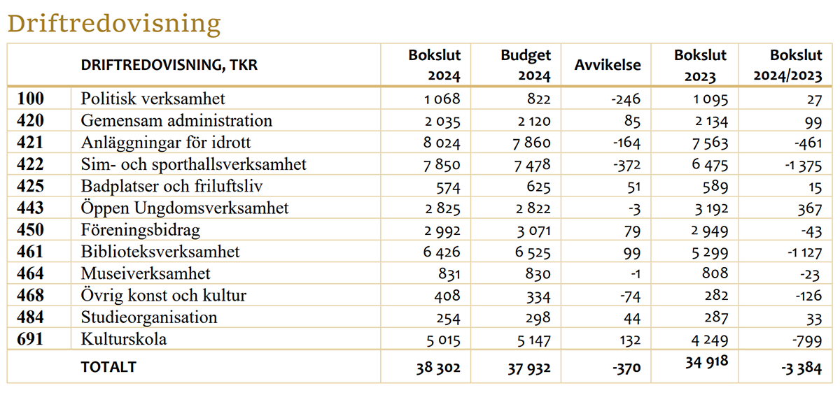 I kultur- och fritidsnämndens verksamhetsberättelse för 2024 framgår det att nämnden gick med ett underskott mot satt budget på 370 000. Boven i dramat stavas gamla och slitna simhallar.
