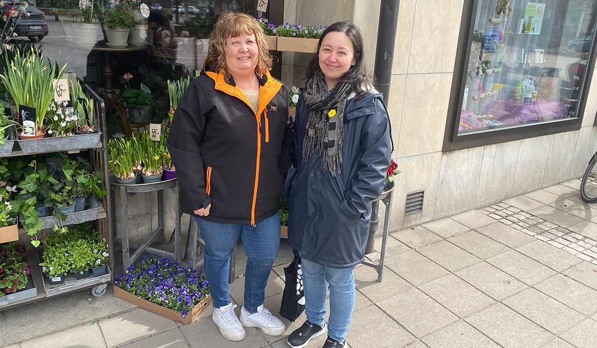 På plats är företagarna Mharelene Forthmeiier som driver Studio M Nails, Kerstin Pierrou som driver Beklädnadsaffären samt Johanna Melin som driver Skillingaryds blomsterhandel. Alla tre stöttar Majblomman och berättar att de blommor som eventuellt inte säljs hamnar i butikerna efter det att säljperioden är över.