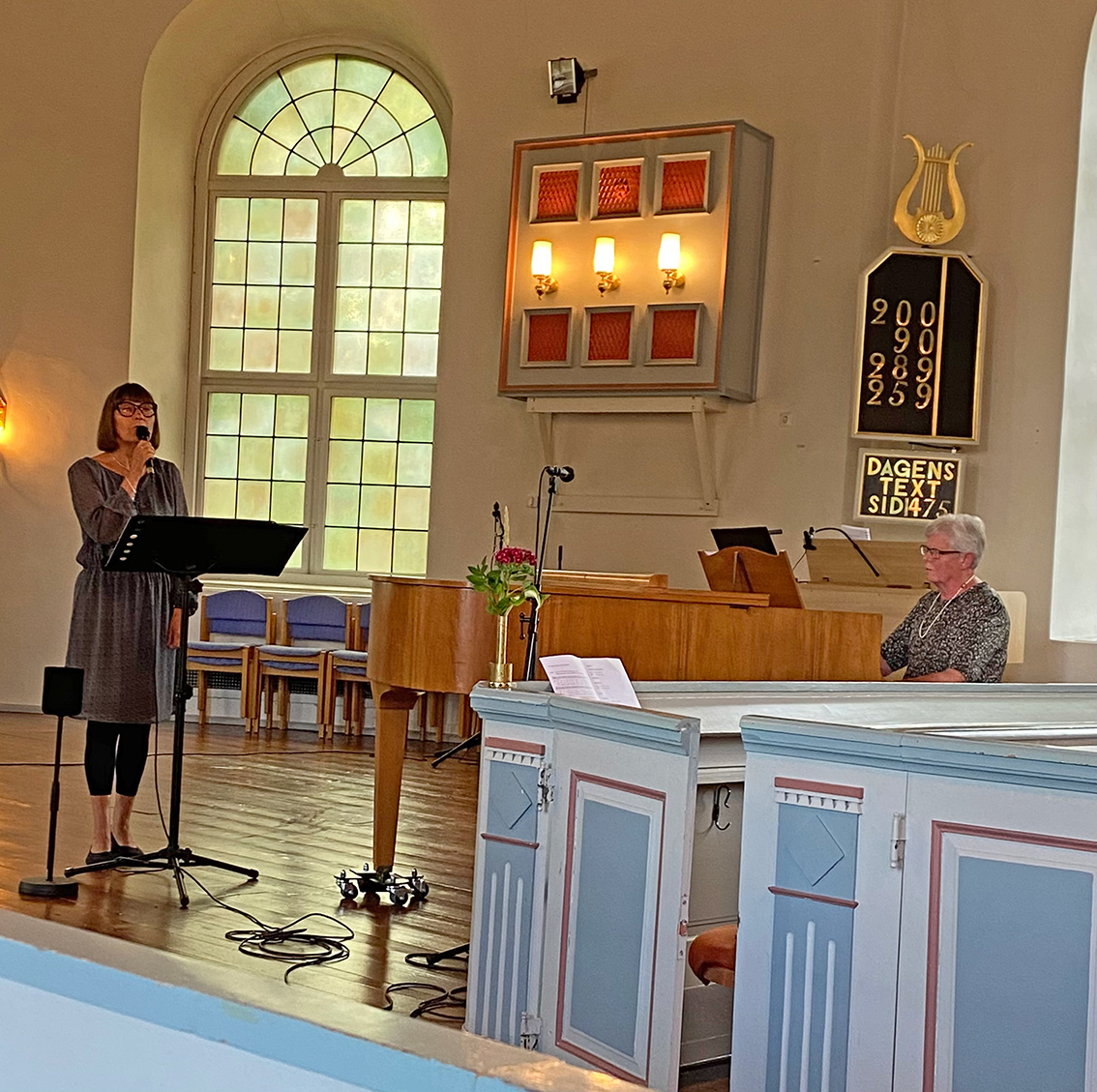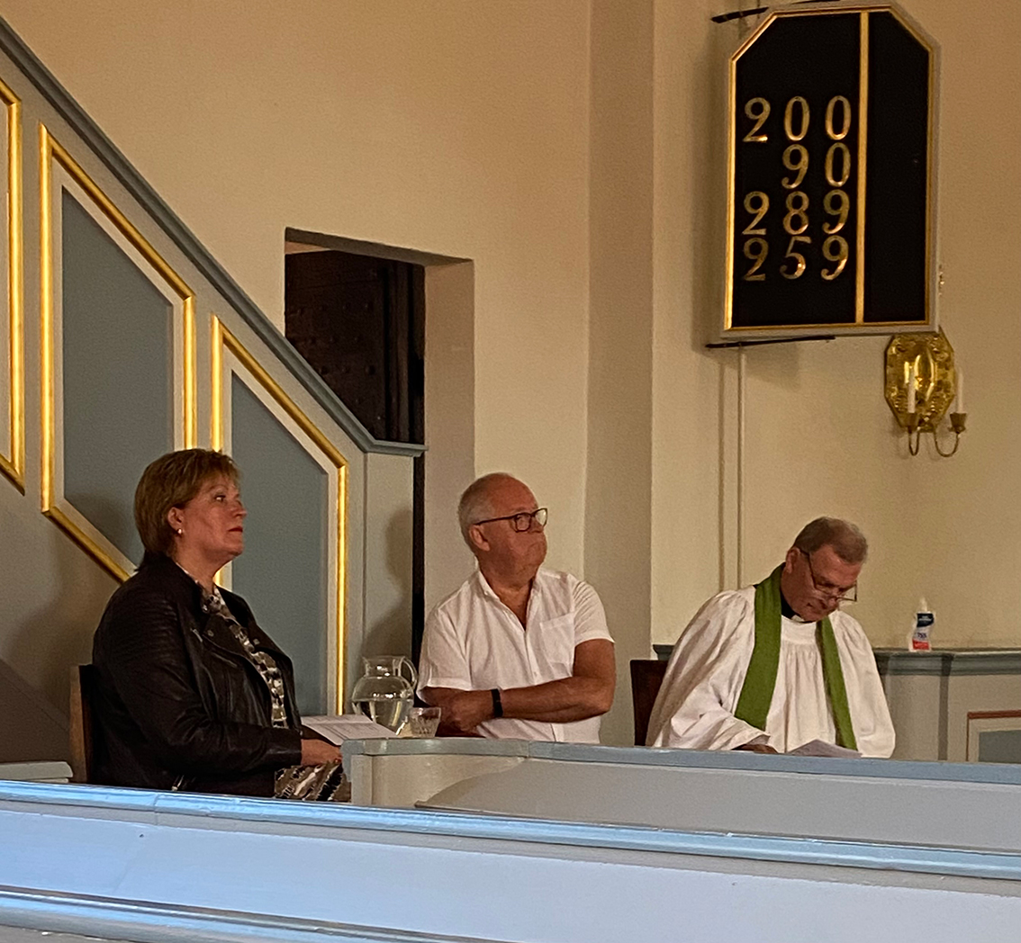 Många gudstjänstbesökare fick lyssna till sång och musik av Gudrun Seifert och Ing-Marie Åkerhag och dagens präst var församlingens tidigare kyrkoherde Ebbe Appelros.