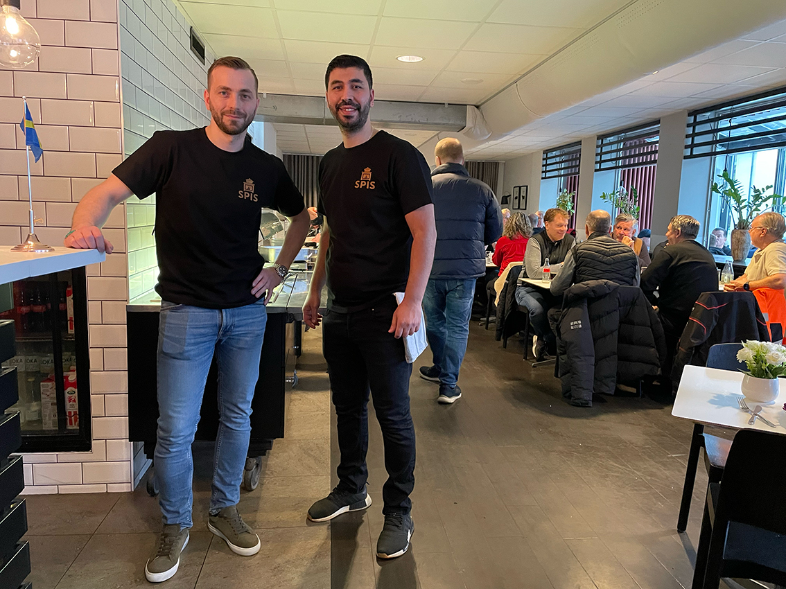 När vi kom till Spis vid lunchtid under onsdagen var det fullsatt och nye ägaren Arben Peci var lycklig: – Första dagen i dag. Det har varit jättebra och vi hoppas att det fortsätter. Vi lägger krut på lunchen just nu och sedan kommer vi att utöka framöver så snart vi kan. Vi fokuserar på en grej i taget, kommenterar Arben.