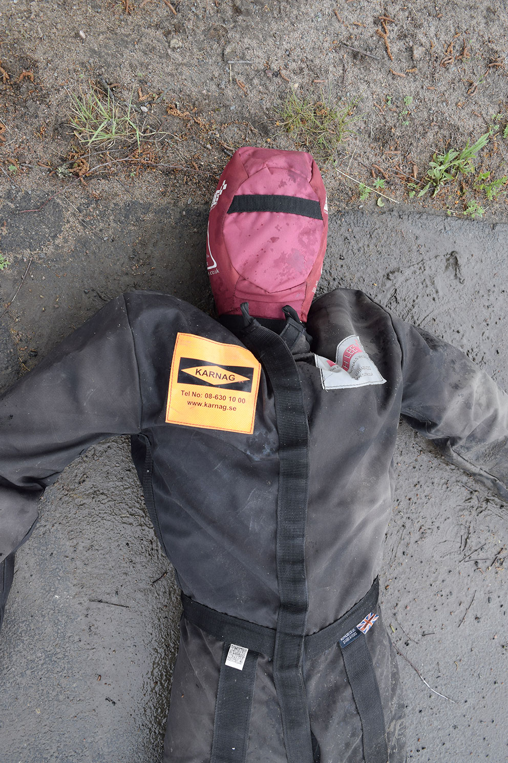 – De ska dra ut den stora slangen samt två smala slangar på tid och därefter släpa en docka som väger 85 kilo, säger Mats vid ”sin station”.
