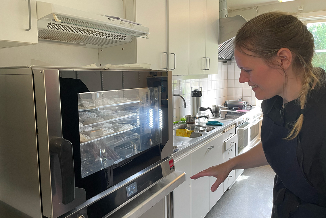 Ugnen går varm, degar ligger och jäser och Evelina Hallqvist Silverudd skyndar omkring för att iordningställa det sista innan kaféet öppnar för säsongen. Det är mycket att stå i den här varma dagen alldeles i början på juli.