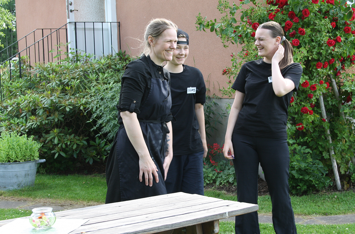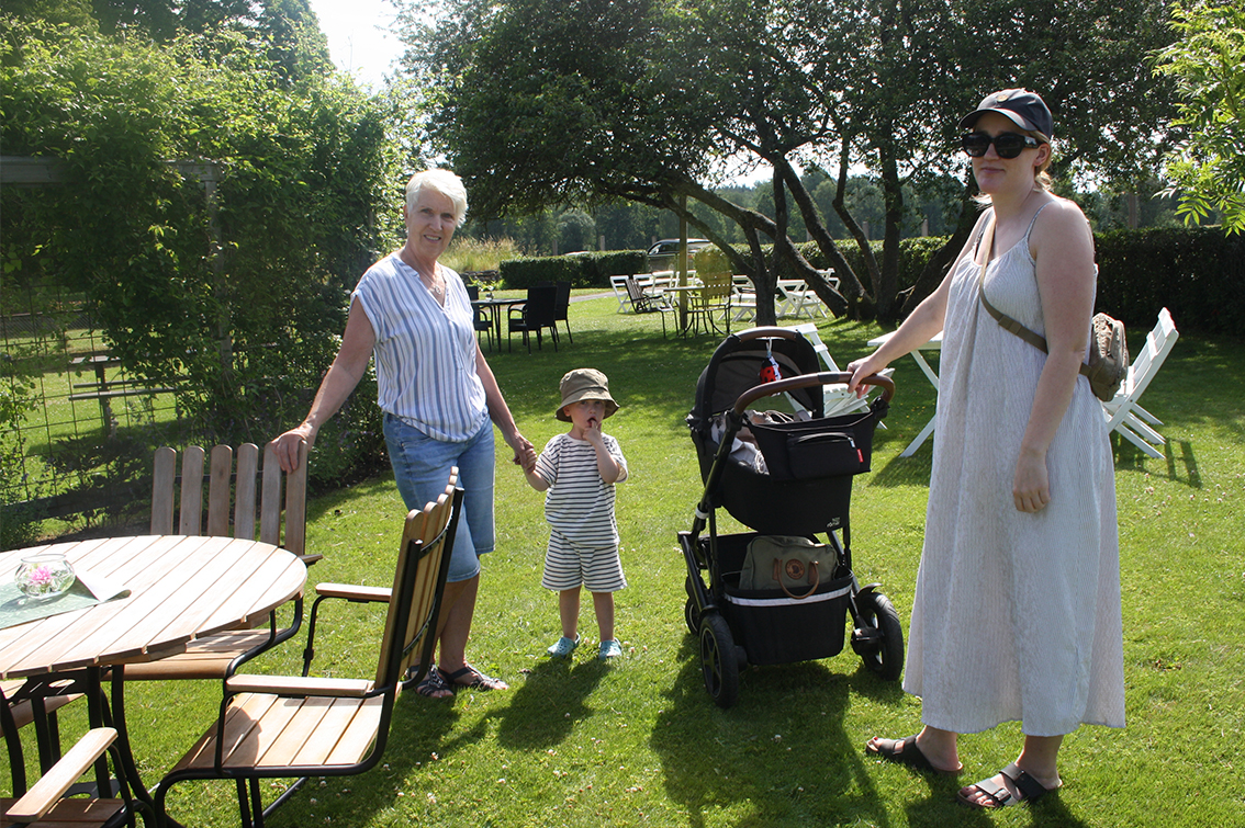 – Miljön är helt underbar, säger Evelina när hon och barnen tar en andningspaus i den blomstrande trädgården innan gästerna kommer.