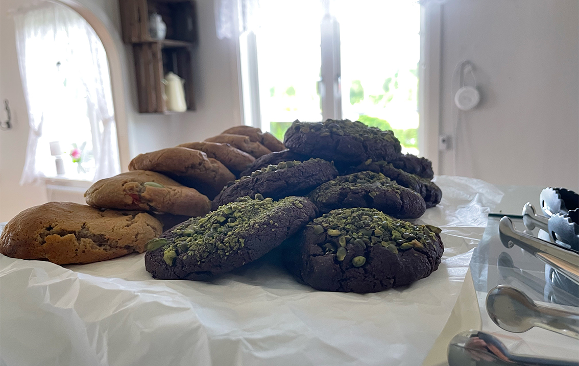 Nästan allt gick åt. Kvar fanns tre cookies och sex chokladbollar. Så Evelina fick räkna med att baka hela natten lång.