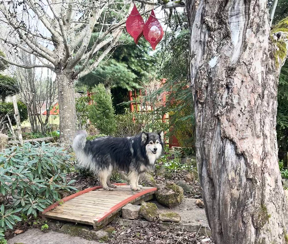 Hunden ville gärna vara med på ett hörn.