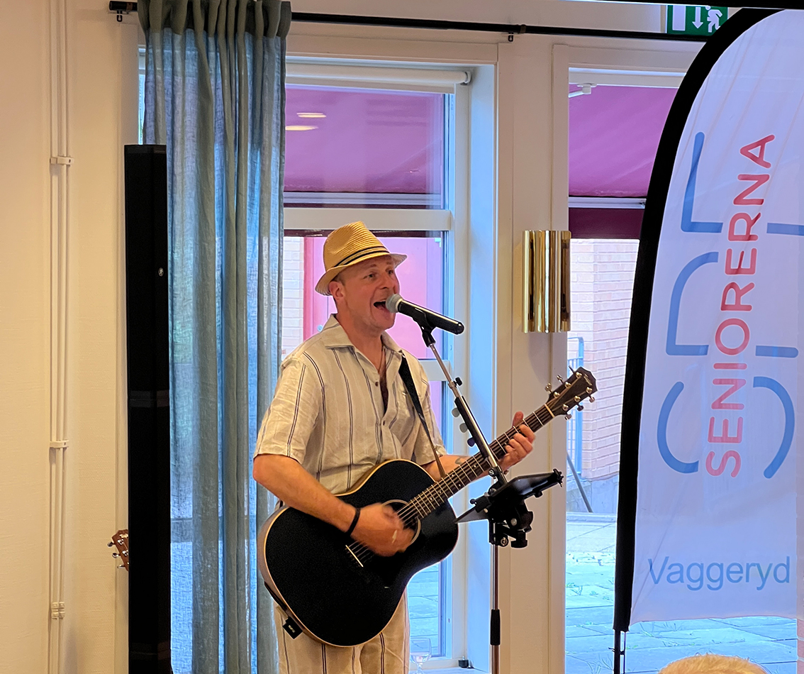 Oskar Kjällgren, trubadur med bred repertoar, stod för underhållningen då SPF Seniorerna i Vaggeryd samlades till månadsmöte och höstupptakt som förlagts till restaurang Linnéa.