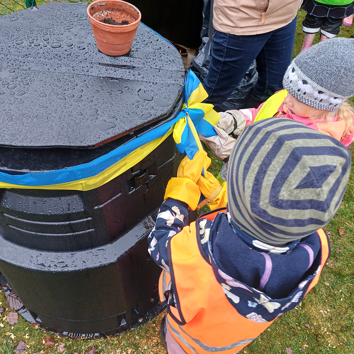 På Bullerbyns förskola var det idag invigning av kompostering som en del i arbetet med hållbar utveckling och ett cirkulärt tänk.