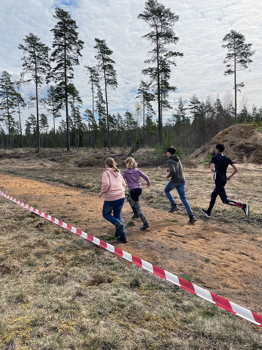 Invigningslaget, som bestod av Camilla Björnsdottir, Rasmus Rydberg, Karl Lagerman och Emil Lagerman, springer genom bandet