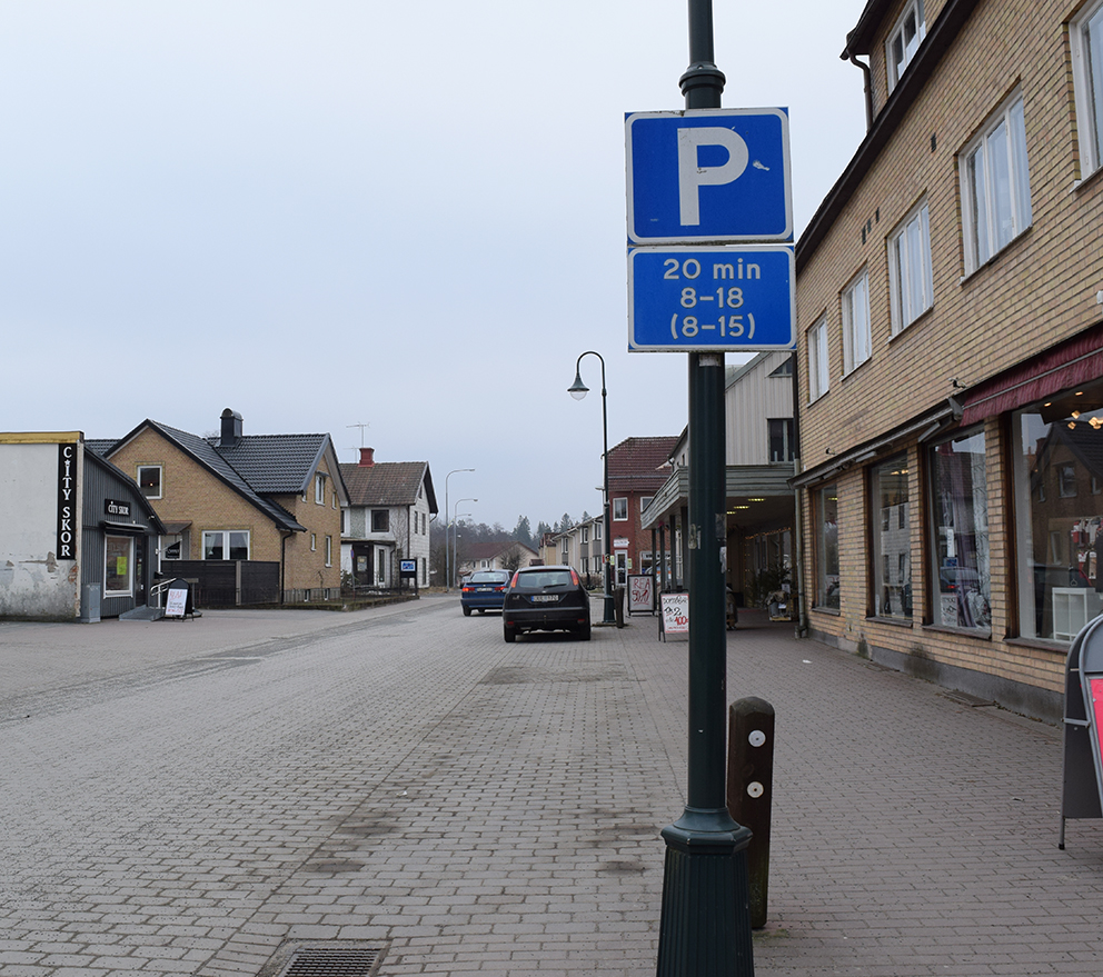 Men fortfarande finns 20 minuters skyltarna uppsatt vid parkeringsplatserna vid Viktoriagatan i Vaggeryd.