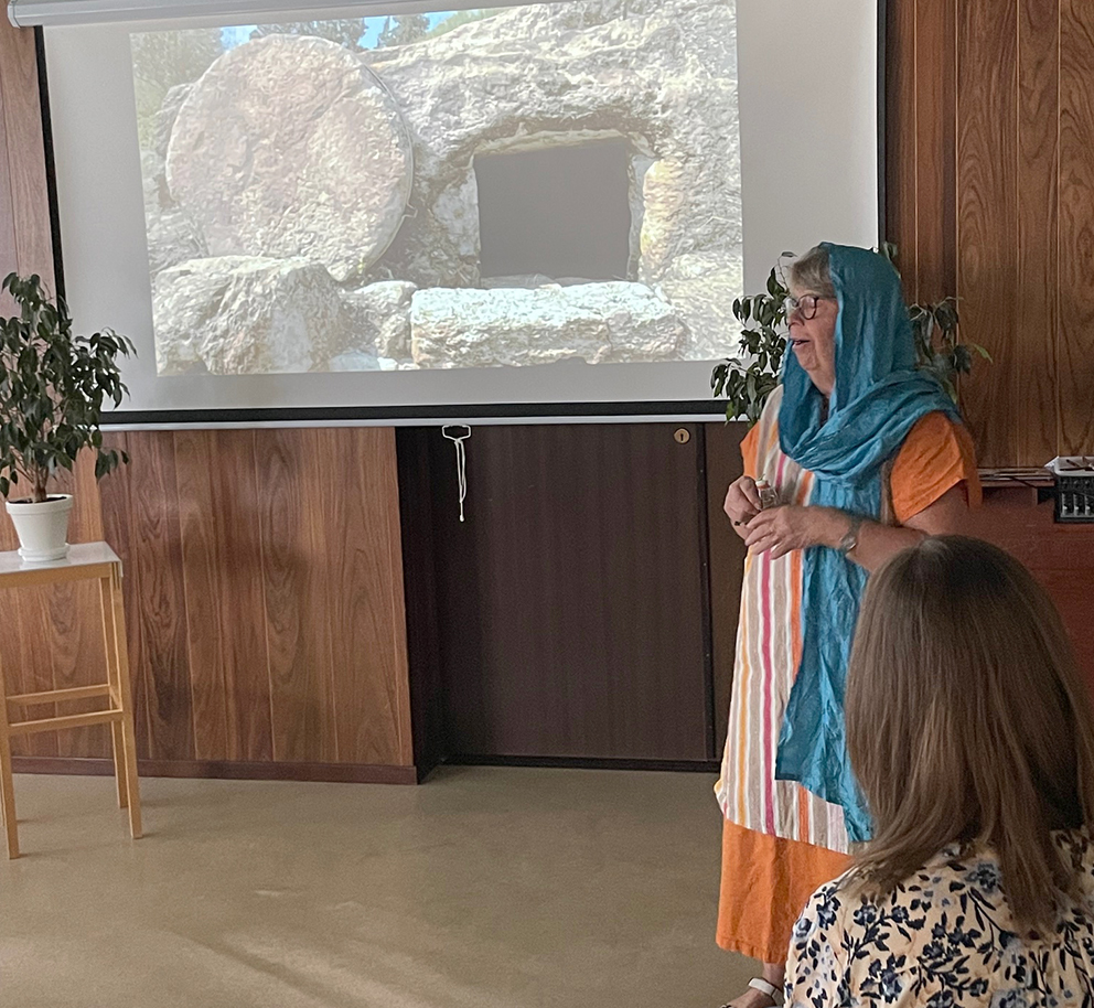 Händelserna under påskveckan presenterades av församlingens medlemmar i tidsenliga kläder. Man fick vara med om hur Jesus och lärjungarna firade påskmåltiden, dramat i Getsemane spelades upp och berättelsen om hur Jesus tillfångatogs och korsfästes presenterades. På den sista stationen möts man av påskdagens budskap, den tomma graven och kvinnan som berättar att Jesus lever!