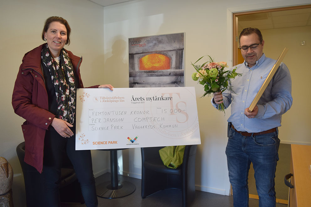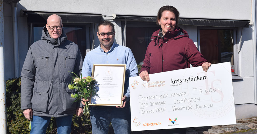 Science Park, Tillväxtstiftelsen och Vaggeryds kommun delade ut priset för Årets Nytänkare i Vaggeryds kommun för 2021 under förmiddagen. Pristagaren var Per Jansson vid Comptech för ett "gammalt genuint bolag med helt ny teknik som är rätt i tiden".