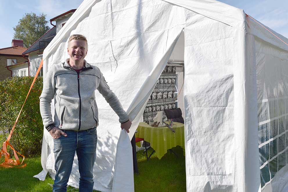 – Vi har startat gudstjänster och församlingsmöten i Pingstkyrkan. Det känns så bra att vara igång. Vi följer folkhälsomyndighetens krav på 50-gräns men vi saknar närkontakten med våra församlingsmedlemmar. Ibland behövs en kram. Men det är skönt att vara igång och församlingsmöten, som vi tidigare haft ett i månaden, har blivit åsidosatta under pandemin, avrundar Mattias och stängde östra delen på sitt partytält som agerat som fika- och samtalsrum på Åkersvägen i Skillingaryd.