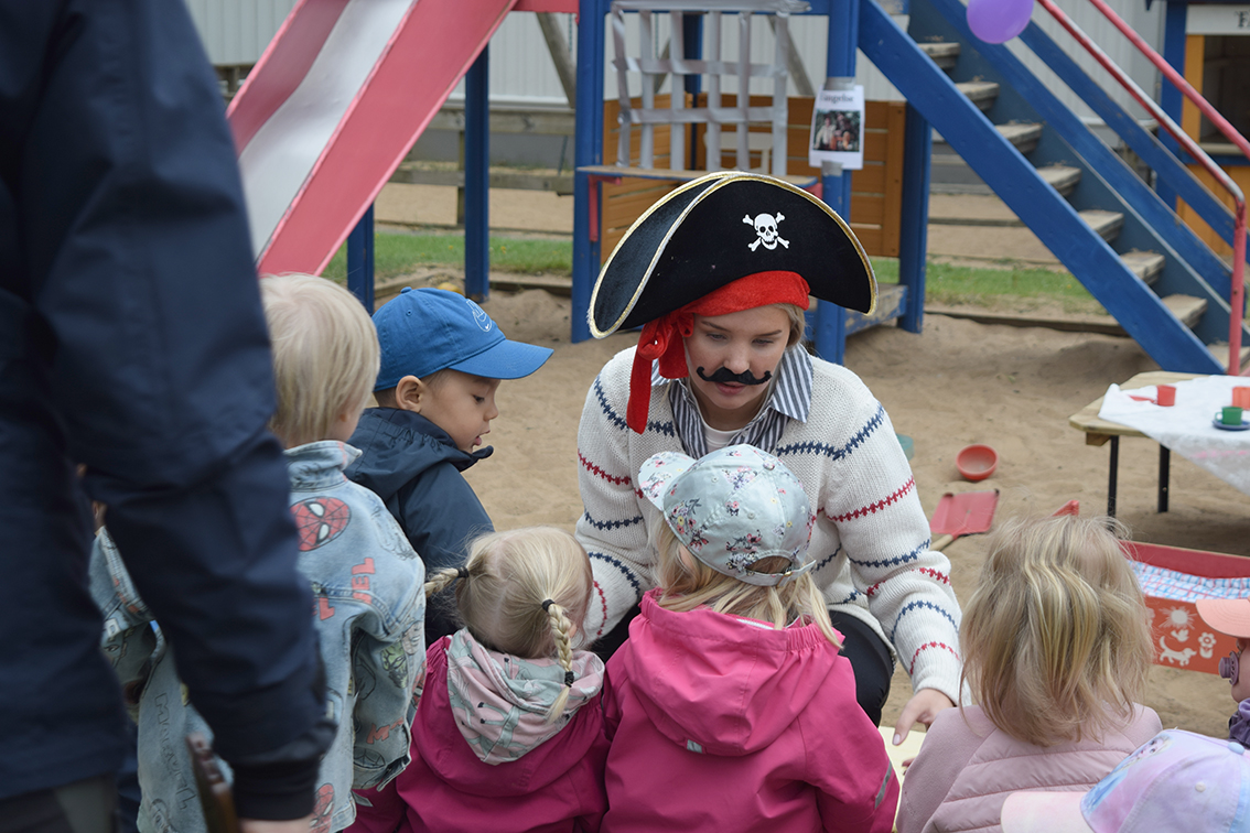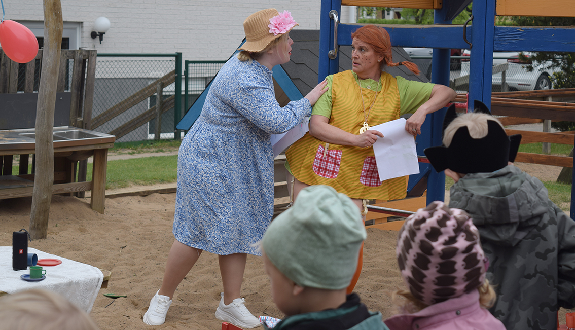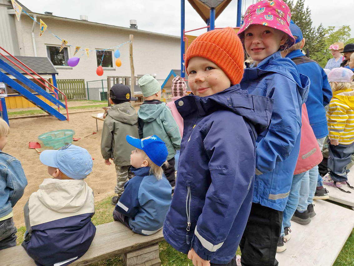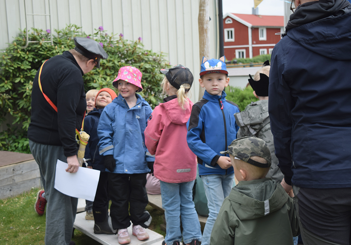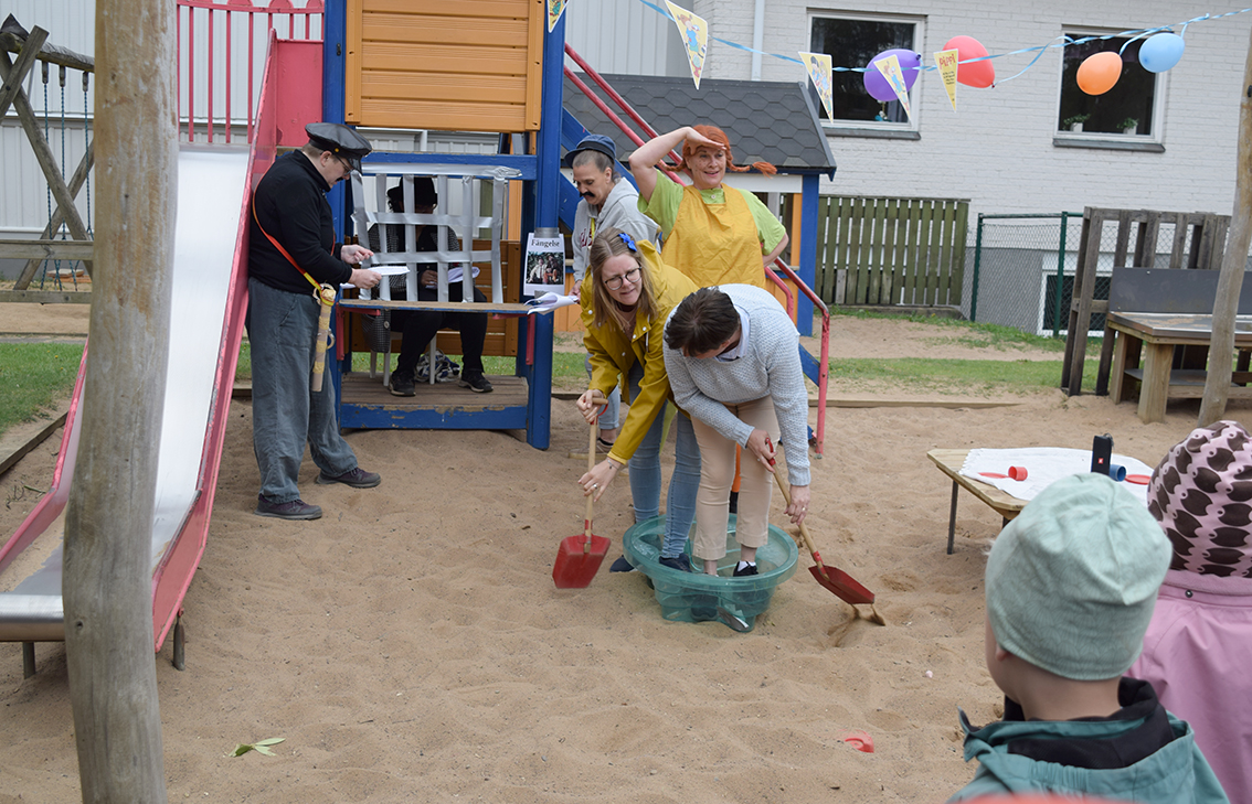 Förskolan Framtiden firade med kalas under onsdagsförmiddagen. Sandlådan fick agera scen och barnen tog plats intill scenen.
