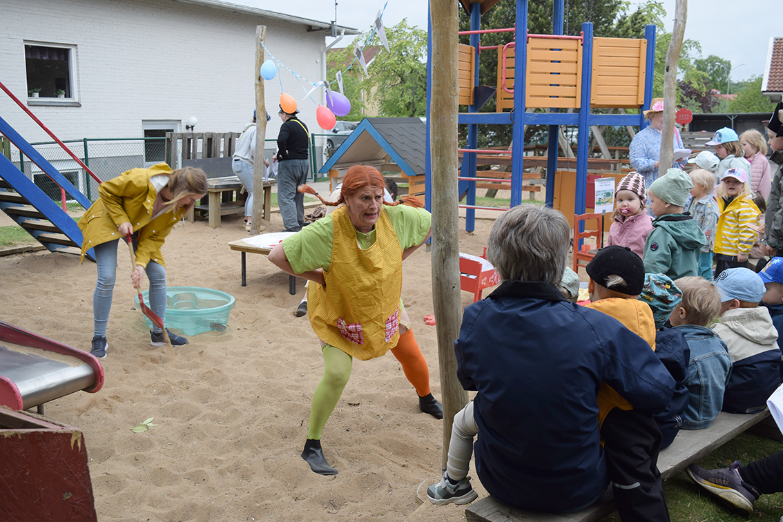 Förskolan Framtiden i Skillingaryd bjöd de 30-talet barnen på härlig föreställning och kalas när Pippi Långstrump firade födelsedag.