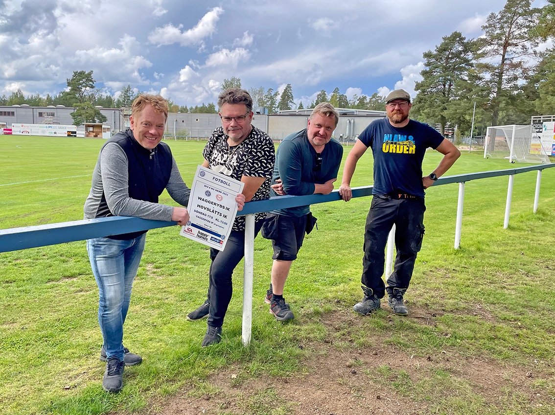 Bengt Carlsson, ordförande i Waggeryds IK, Peter Johansson, ordförande i Vaggeryds idrottsplats och vaktmästarna Peter Ahnberg och Patrik Leufvén.