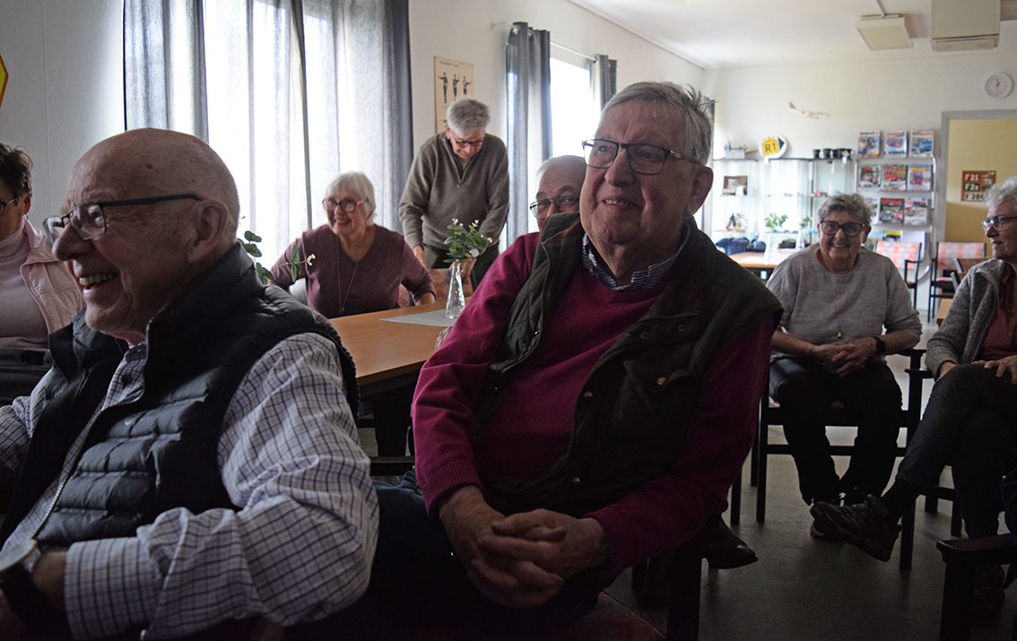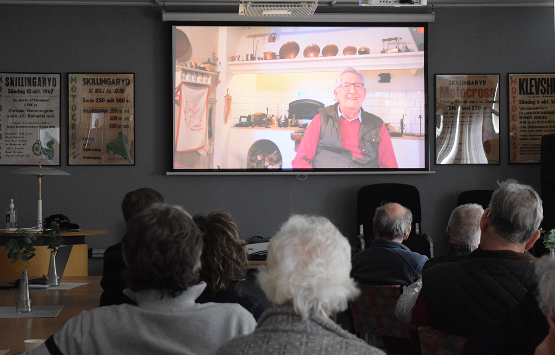 Lite spänt var det allt innan Uno satte igång filmen. Ett 30-tal hade mött upp i klubbstugan hos Götaströms Fordonshistoriska på Hantverkargatan i Skillingaryd. Huvudpersonen själv var såklart på plats.