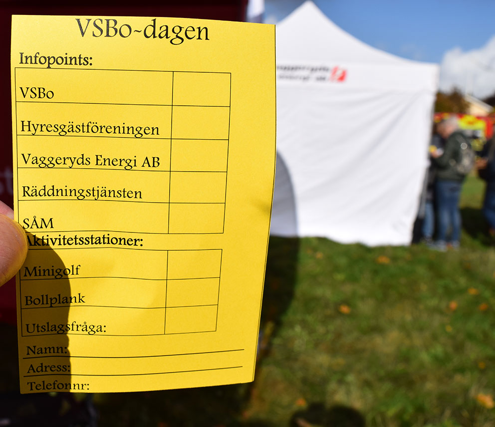 Hoppborg, tipspromenad, minigolf, livemusik, grillning, tävlingar, fika och en rad olika evenemang från bland andra Vaggeryds Energi som lanserade ny tv-tjänst, Räddningstjänsten, SÅM och Hyresgästföreningen gjorde premiärdagen för Vsbo-dagen perfekt.