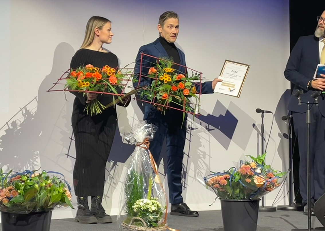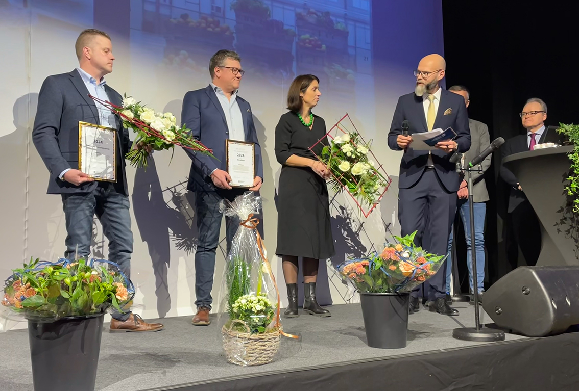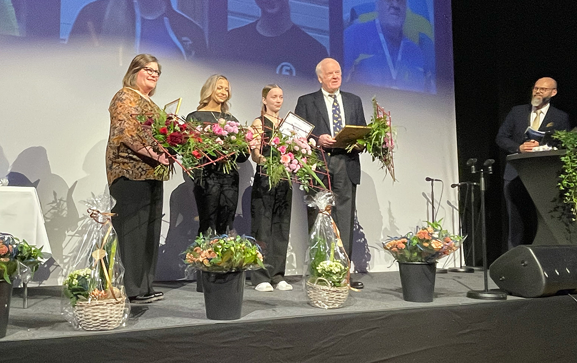 Swedese och Svenska Retursystem utnämndes till årets miljö- och hållbarhetspris som förvaltningschef Thomas Andersson och Magnus Dauhn, ordförande i miljö- och byggnämnden delade ut. Representanter från Svenska retursystem och Swedese kom upp på scen.