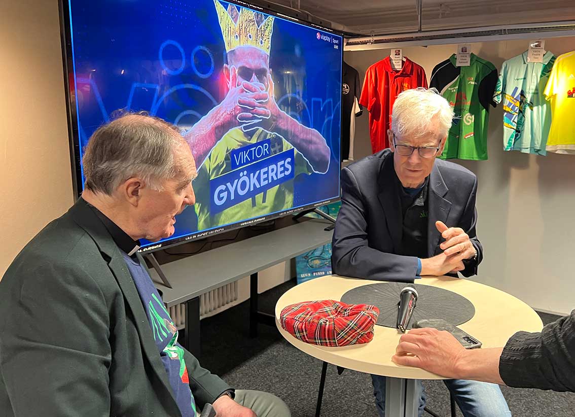 Gäst var prosten Pär AJ Persson som just nu vikarierar som präst i bygden. Han är en stor fotbollsfantast och inför matchen berättade han och intervjuades av Kåre Boberg.