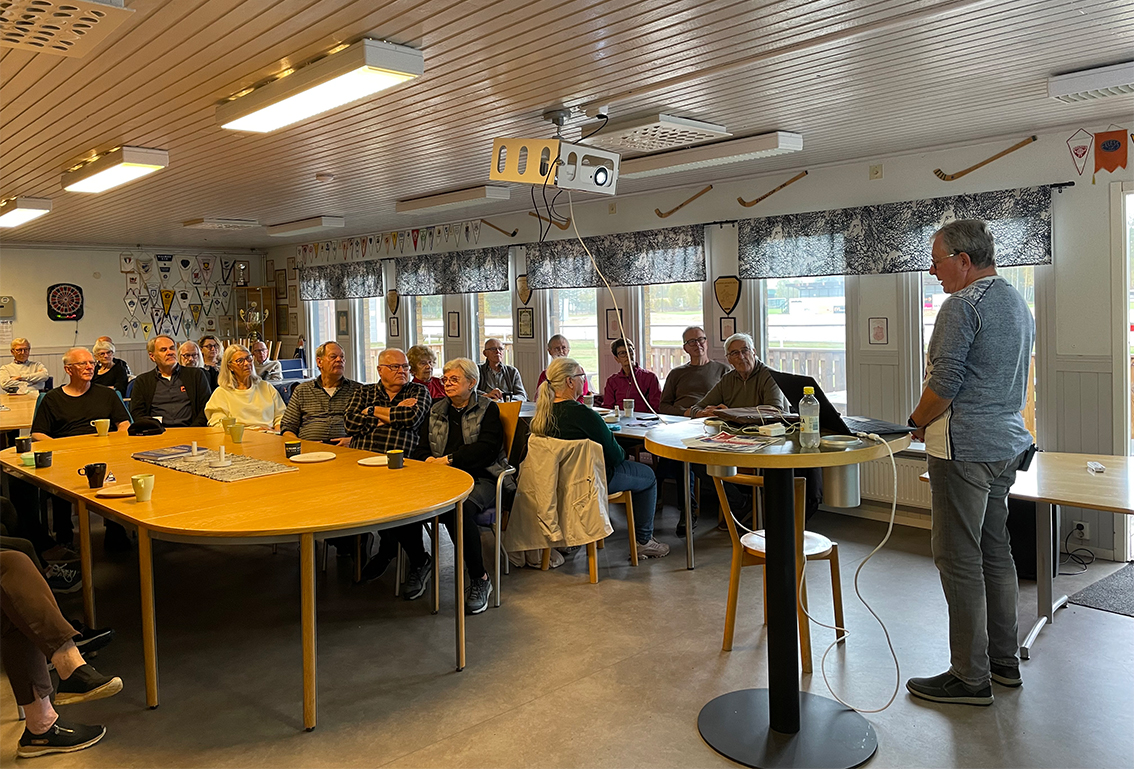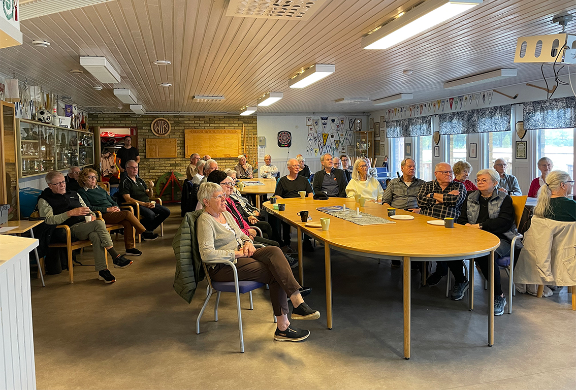 Nästan 40 personer kom till föreläsning och elvakaffe med Kjell Ahlquist i klubblokalen på idrottsplatsen. Bild: Jenny Almlöf