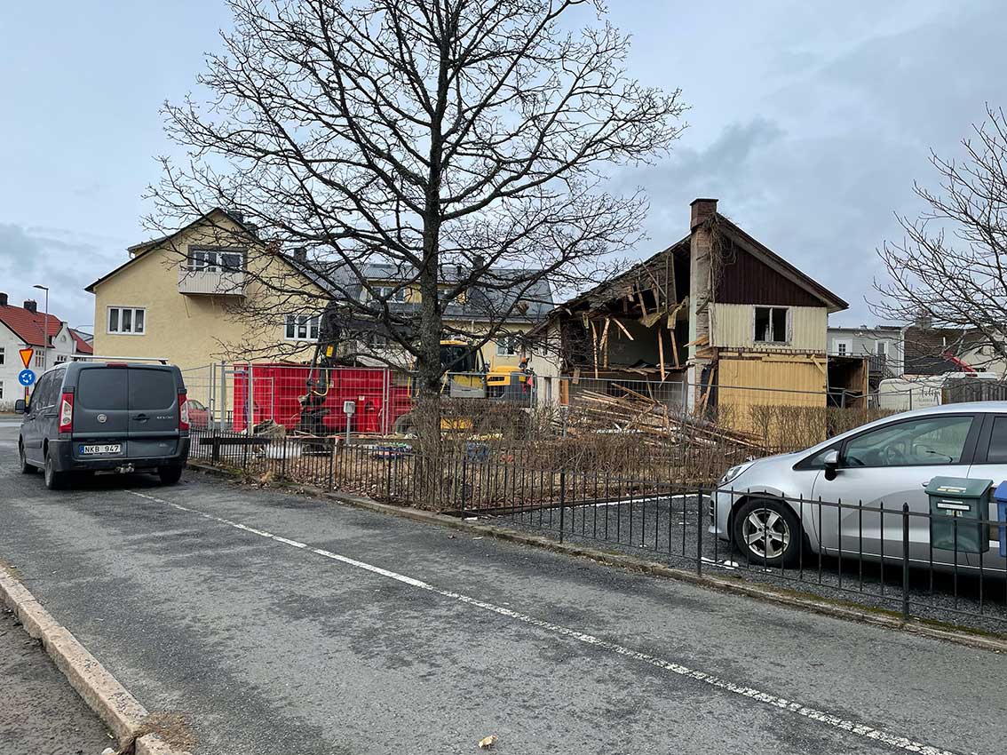 I fredags kunde vi notera att arbetet hade inletts med att riva fastigheten som ligger lite bakom Östergatan, strax intill rondellen vid Götaforsvägen.