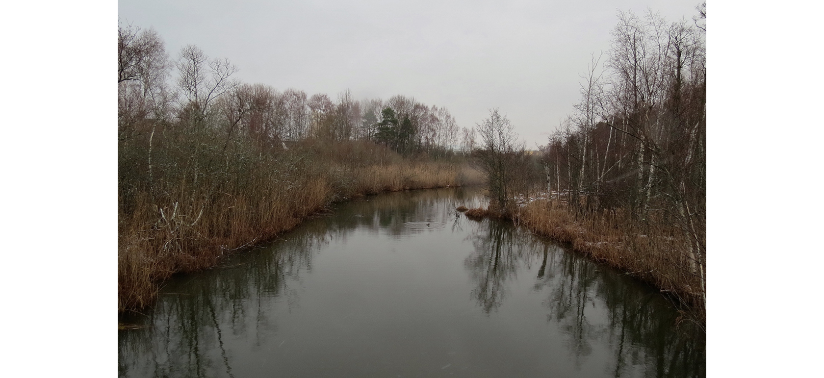 Bilden visar Strömsbergsbäcken uppströms bron innan Rocksjön.