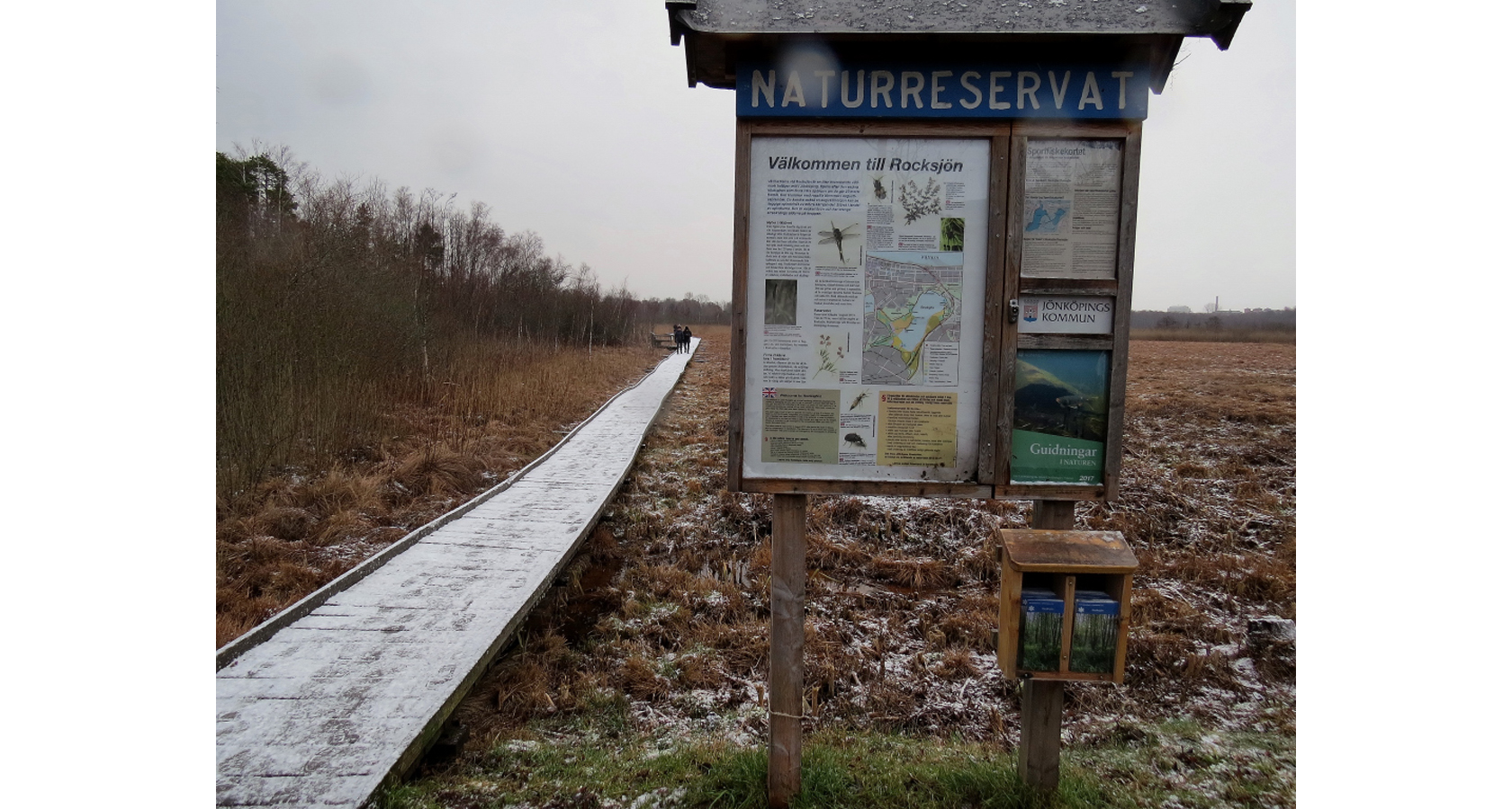 Bilden visar den södra entrén till Rocksjöns naturreservat.