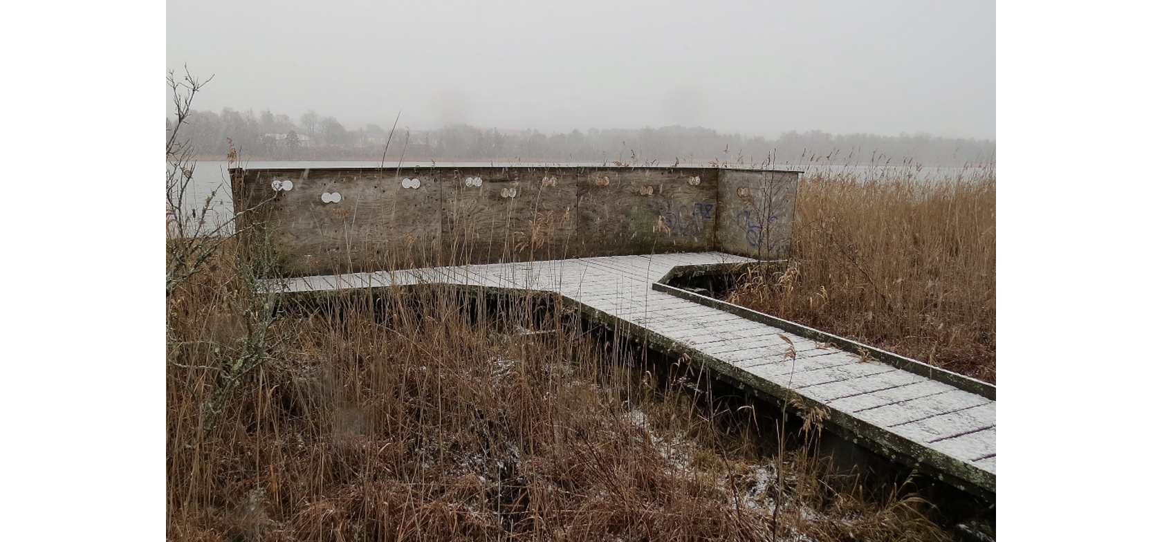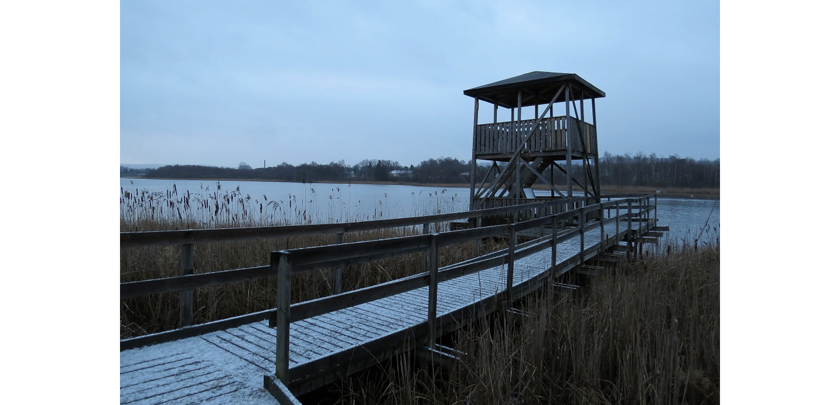 Bilden visar fågel- och kanottornet i södra delen av Rocksjön.