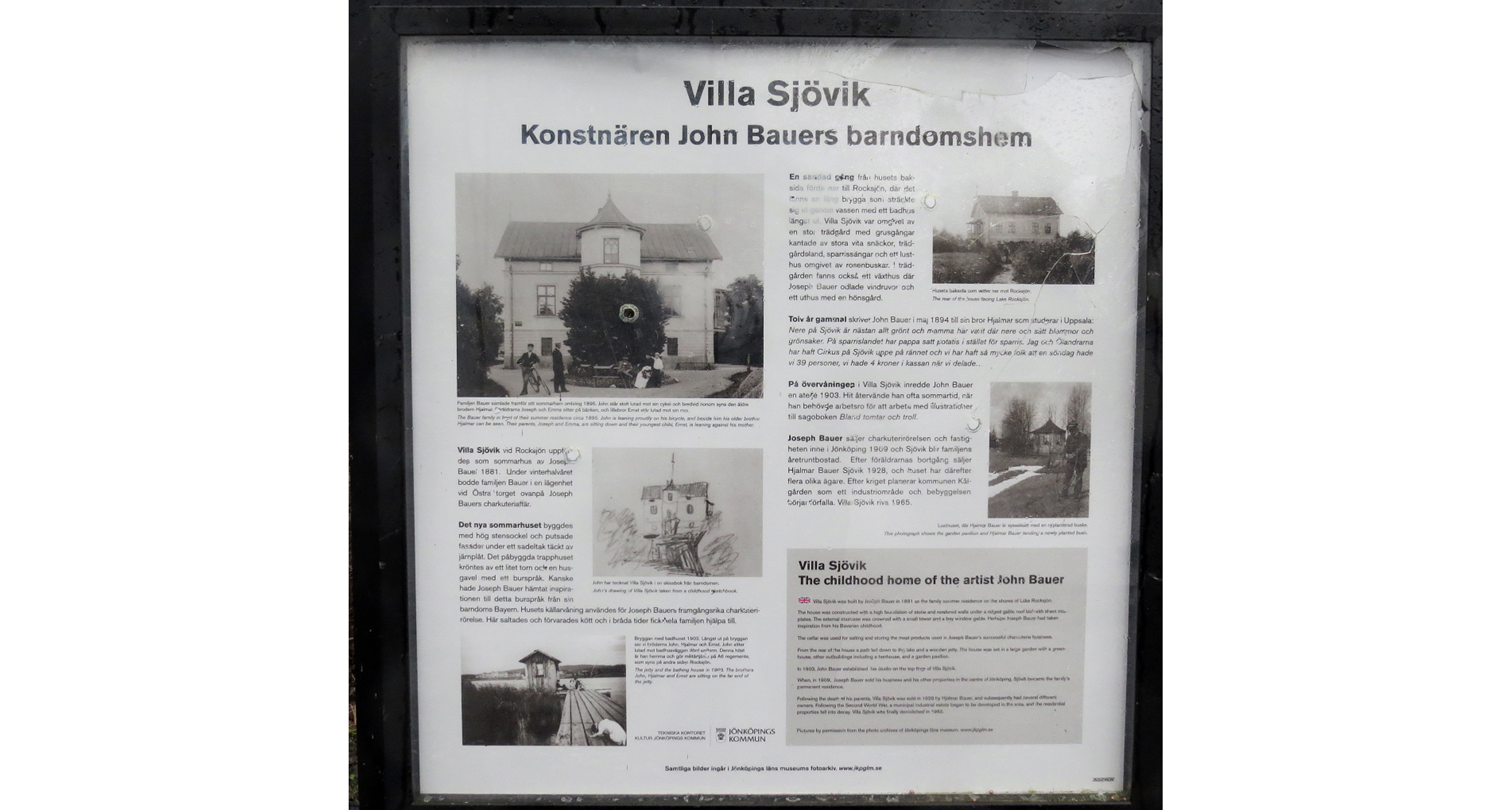 Villa Sjövik byggs vid Rocksjöns västra strand år 1881, året innan John Bauer föds och det är ett ganska stort hus som först och främst används som sommarbostad, medan familjen Bauer ännu bor kvar i lägenheten vid Östra torget.