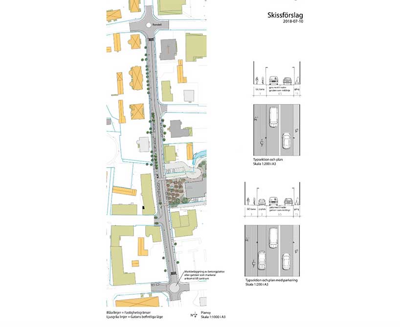 Två rondeller och en gång- och cykelväg planeras. Först planeras den norra rondellen vid Storgatan och Sturegatan byggas och det redan nästa år. Därefter byggs rondellen vid Artillerigatan/Storgatan. Eventuellt kommer detaljplanen för det nya trygghetsboendet vid Mejeritomten påverka föreslagen gatuutformning och hänsyn görs utifrån uppkomna behov meddelar tekniska utskottet.