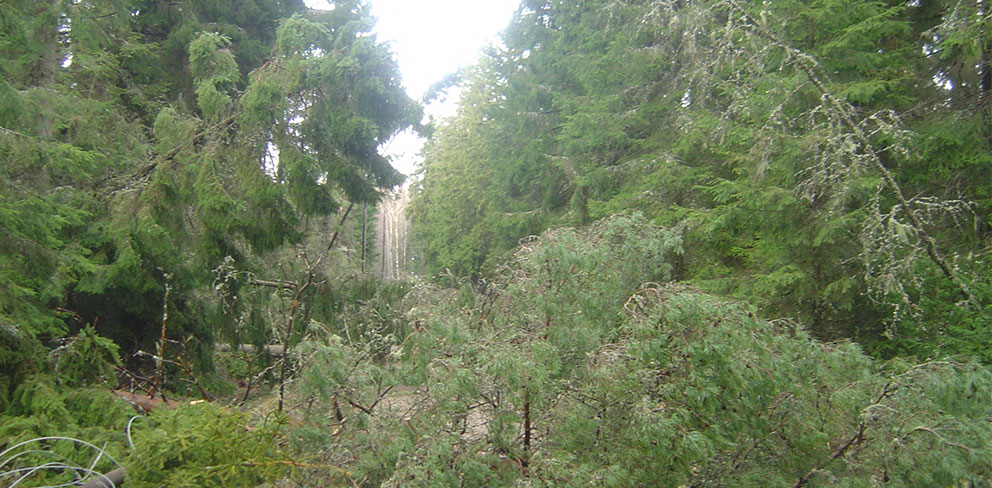 Då va el-ledningen luftburen och gick genom skogen. jag körde taxi på den tiden och skulle ge mig in till Jönköping då det nalkades lördagskväll, hade jag vetat omfattningen innan hade jag aldrig lämnat hemmet.