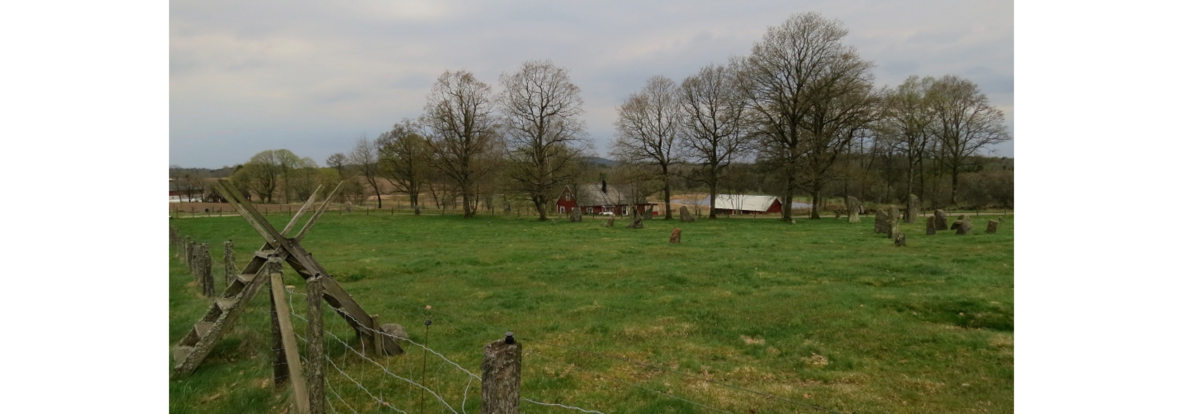 Här ligger, på båda sidorna av den lilla grusvägen, ett mycket stort gravfält, Särestads gravfält, med ett 40-tal resta stenar, ett tiotal högar, stensättningar och en treudd.