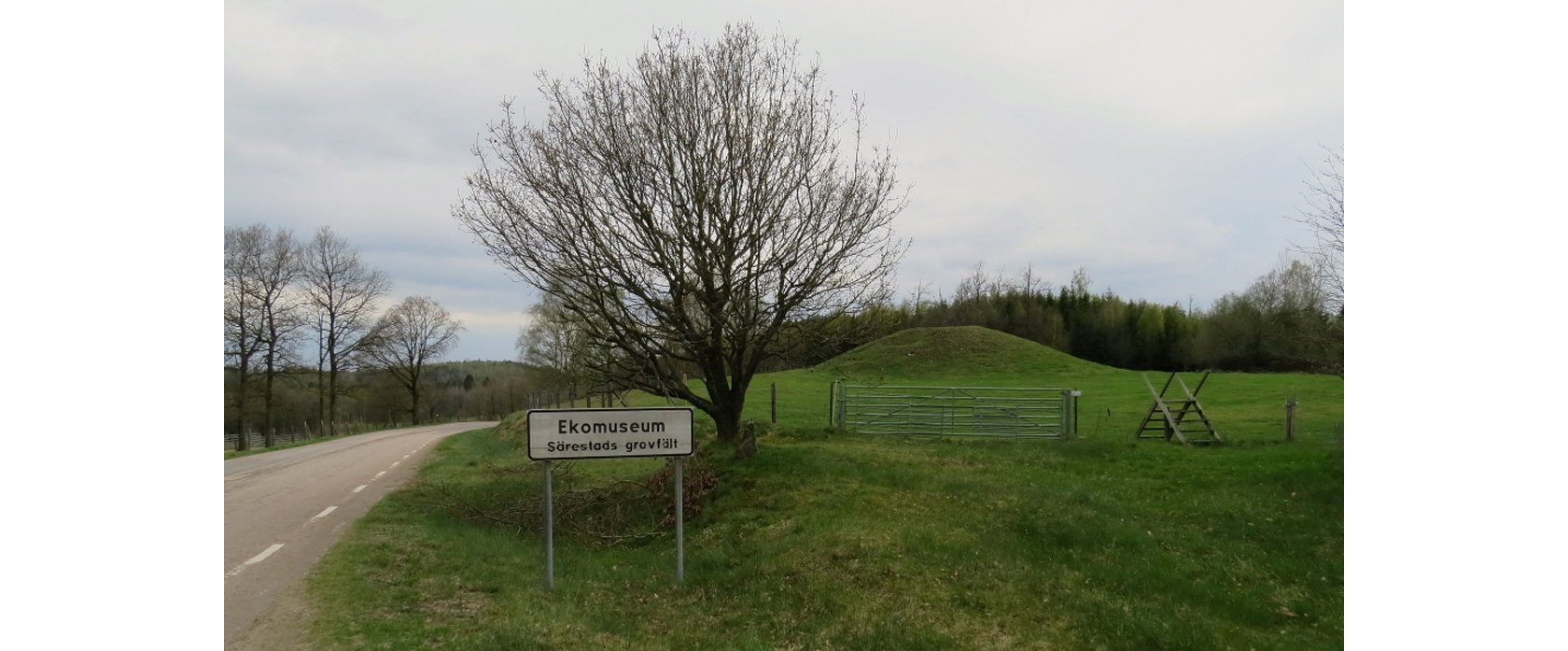 Bilden visar Ekomuseum Särestads gravfält med Hagbards hög, Hagbards kulle, i bakgrunden, 5 meter hög och 35 meter i diameter.