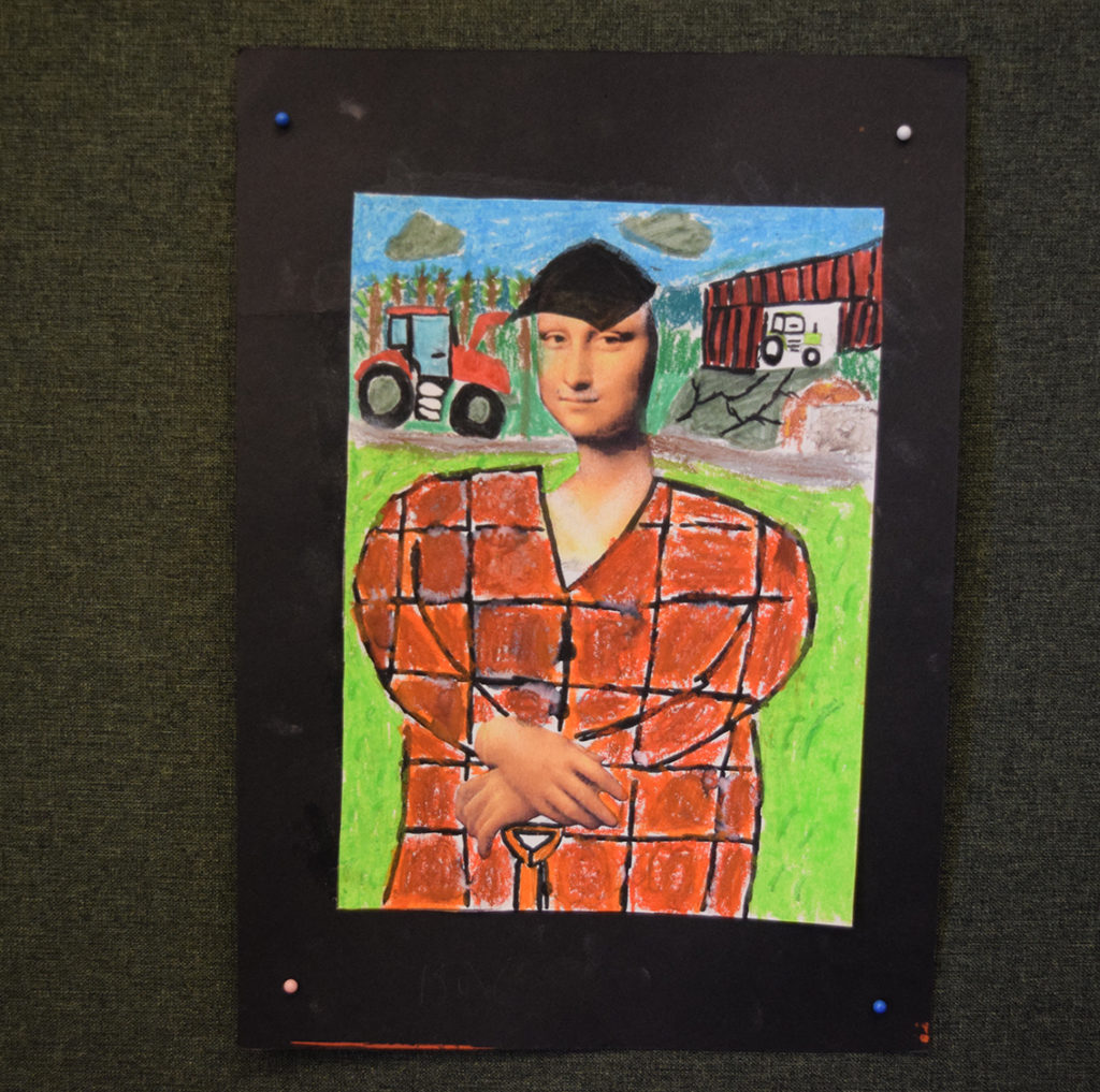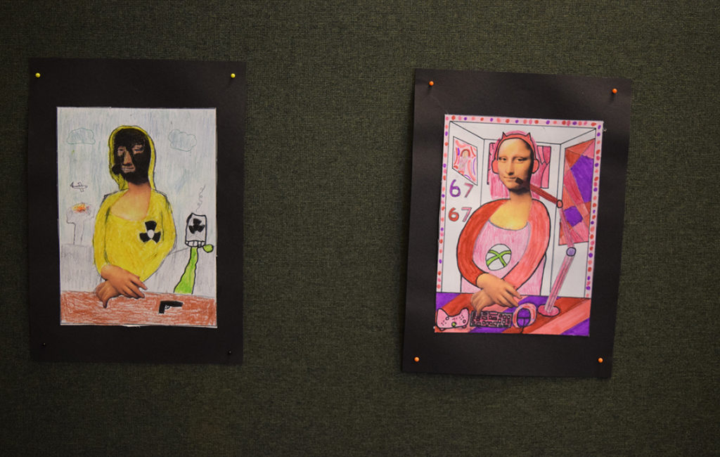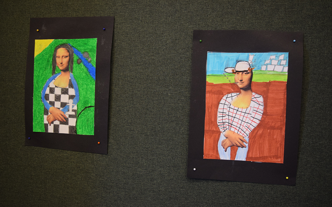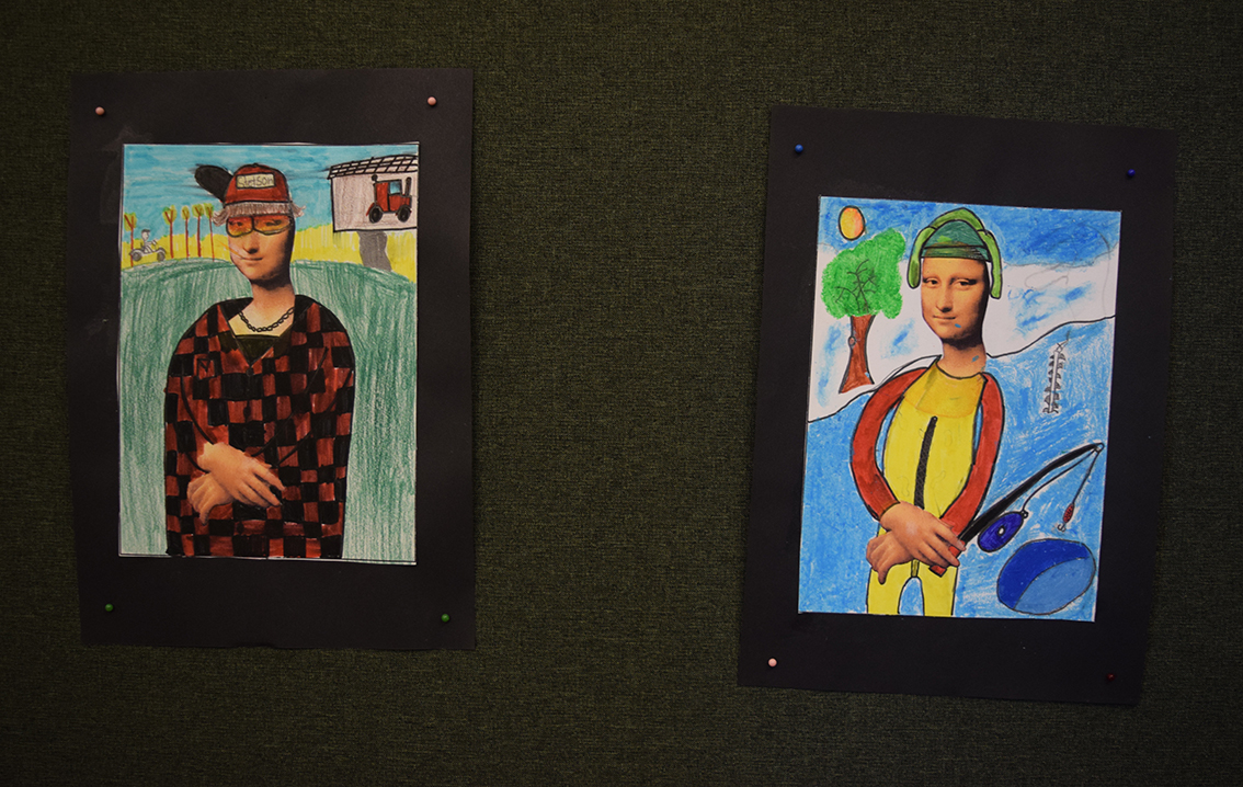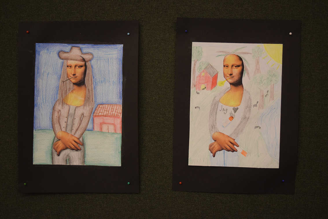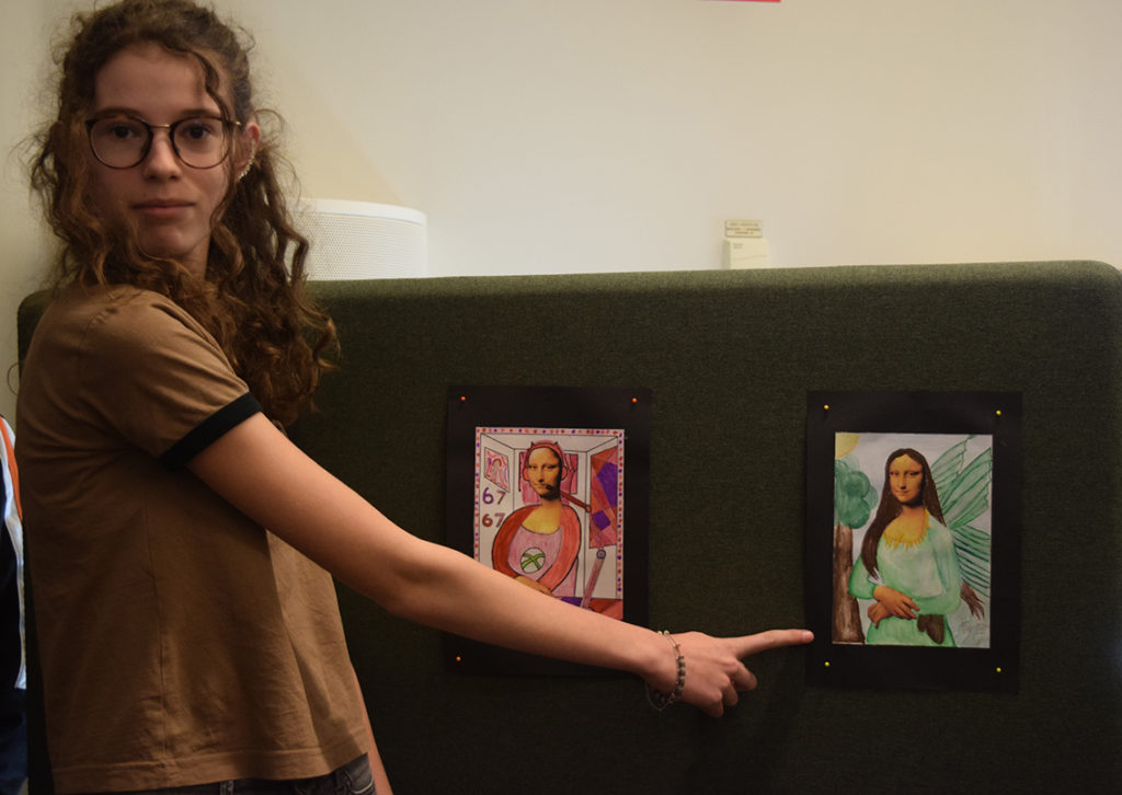 – Vi har jobbat med temat ”World Art Day”, Leonardo da Vinci, parafraser och bilder. Under dagen har vi delat upp vernissaget i halvtimmesdelar så att alla elever på skolan kan komma hit och se vad årskurs 6 har jobbat med. Totalt under förmiddagen kommer 250 elever samt personal kika in här hos oss. Efter rundturen blir det fika.