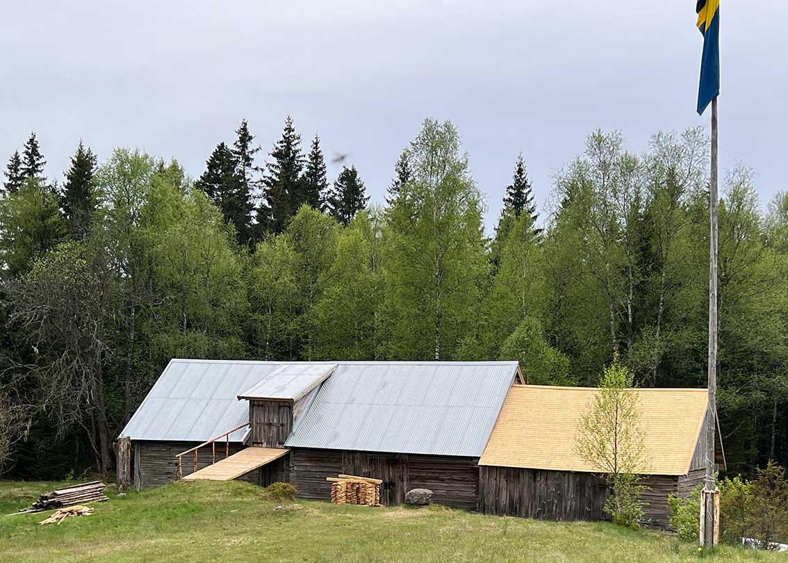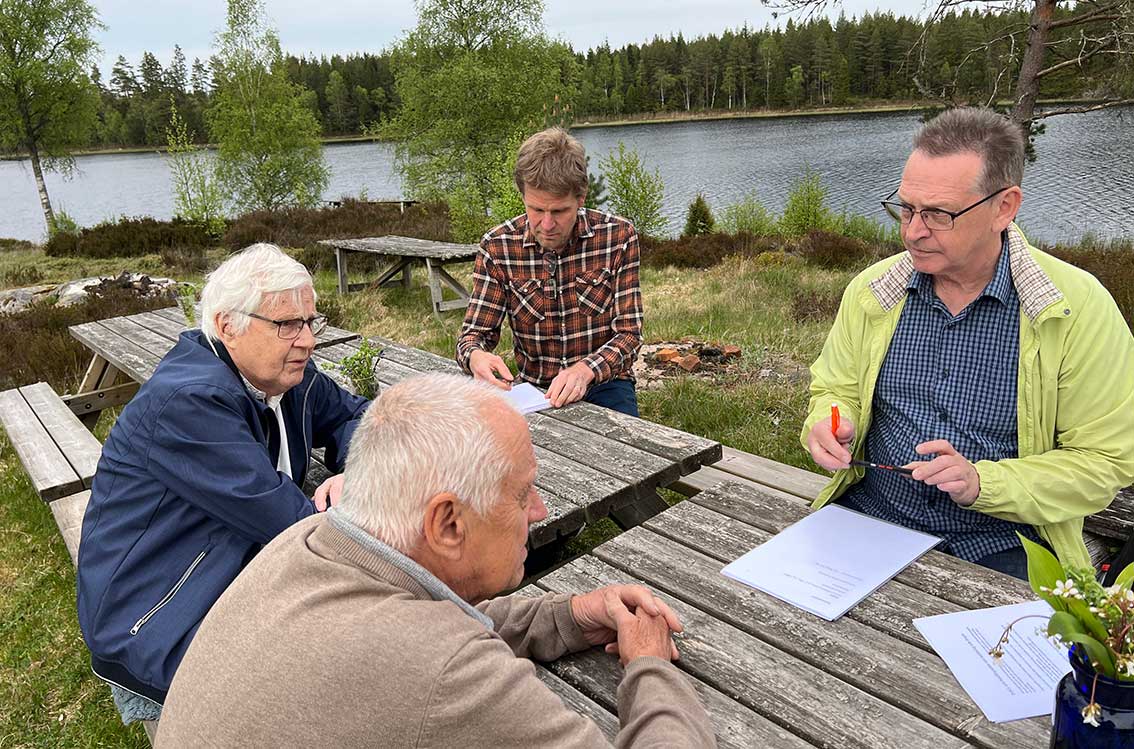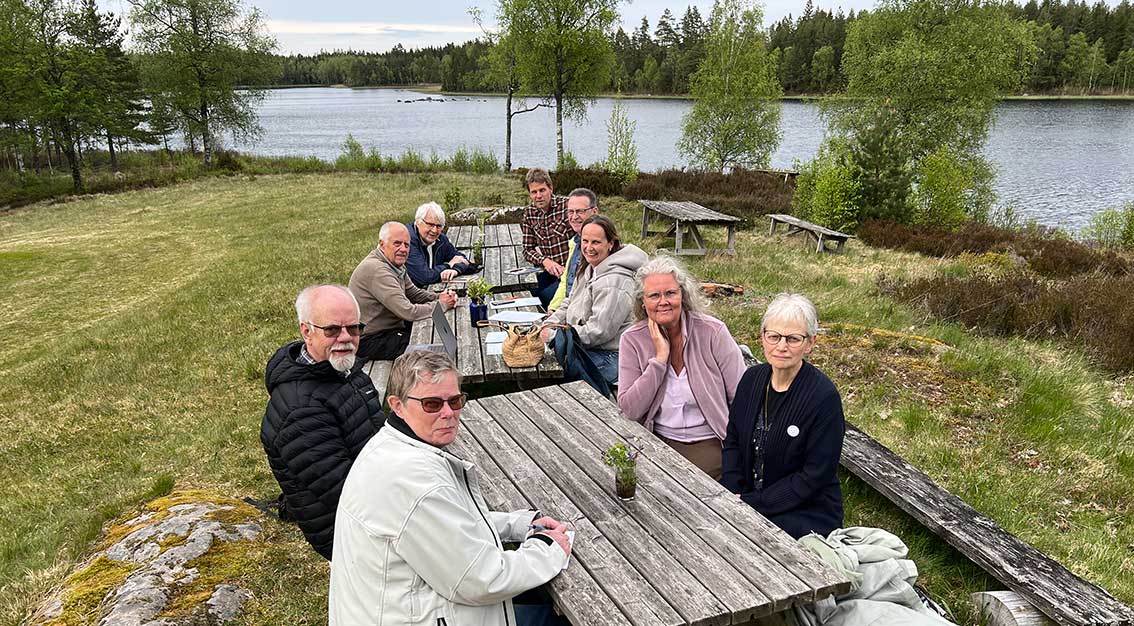 Den här fina kvällen är det kommunens hembygdsråd med ordförande Jenny Larsen i spetsen som förlagt sitt styrelsemöte till just Braskabo. Torpet med två hus och lagård ligger vid en sjö mycket avsides lite söder om Bondstorp. Det är flera kilometer till närmaste granne. Här är bedårande vackert och många passar på att komma hit för att finna ro,. Det är som om tiden stått stilla i väldigt många år.