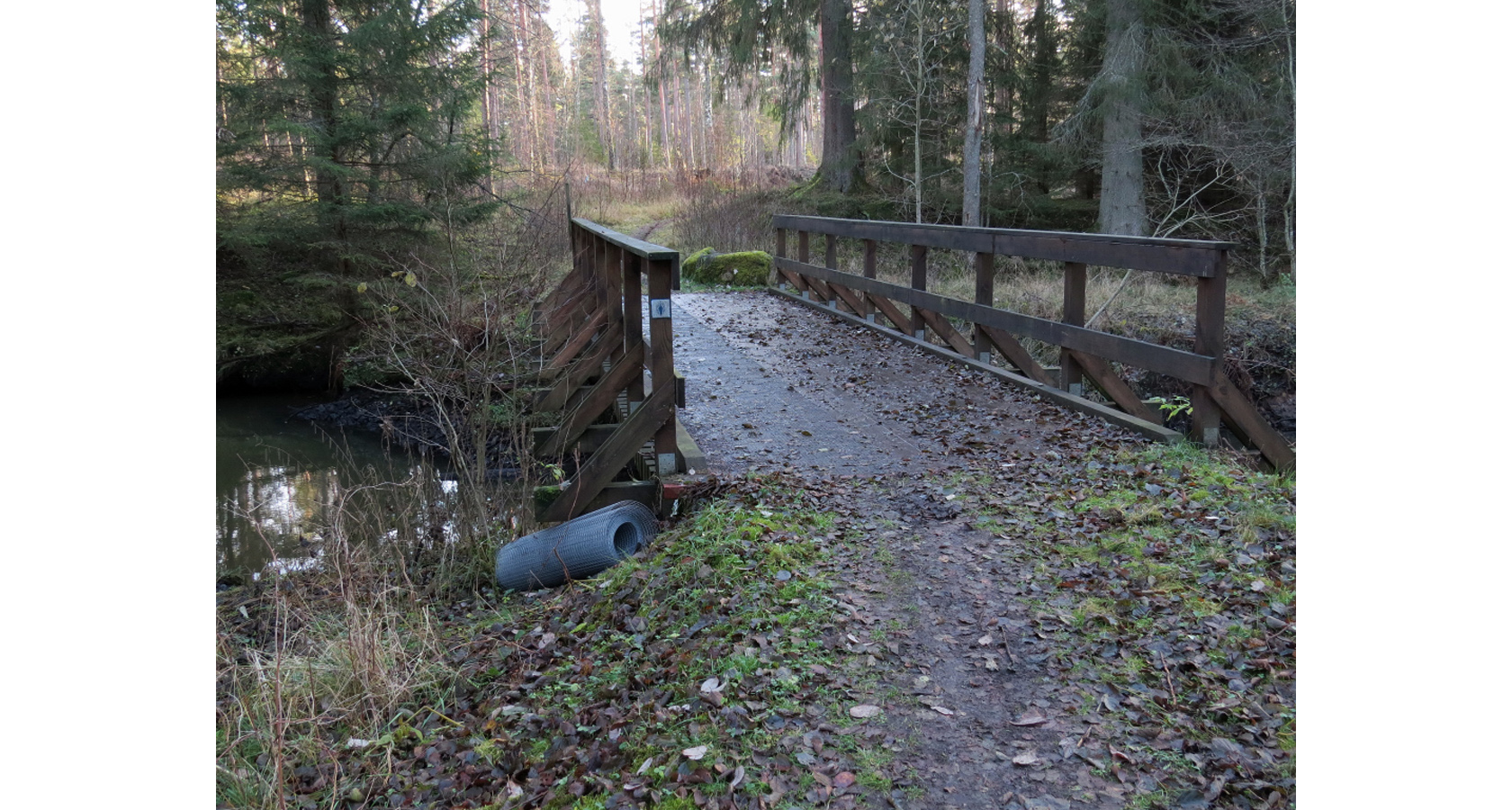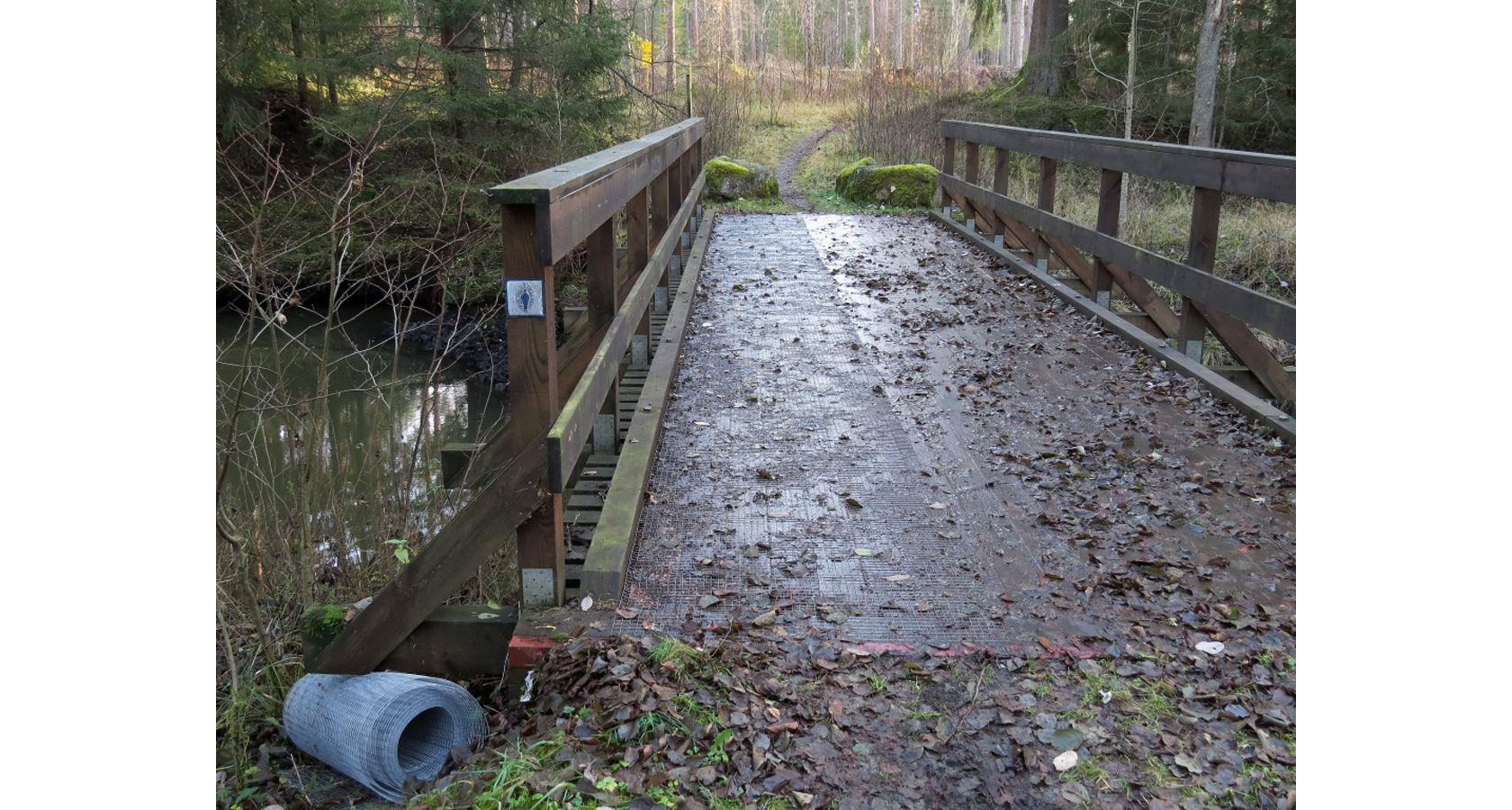 Träbron över den gamla åfåran blir vid vissa tillfällen mer än glashal så välj att passera bron på östra sidan, mot skjutfältet, men lugn det kommer snart även att finnas hönsnät på den västra sidan av bron, det vill säga, nedströms den gamla åfåran.